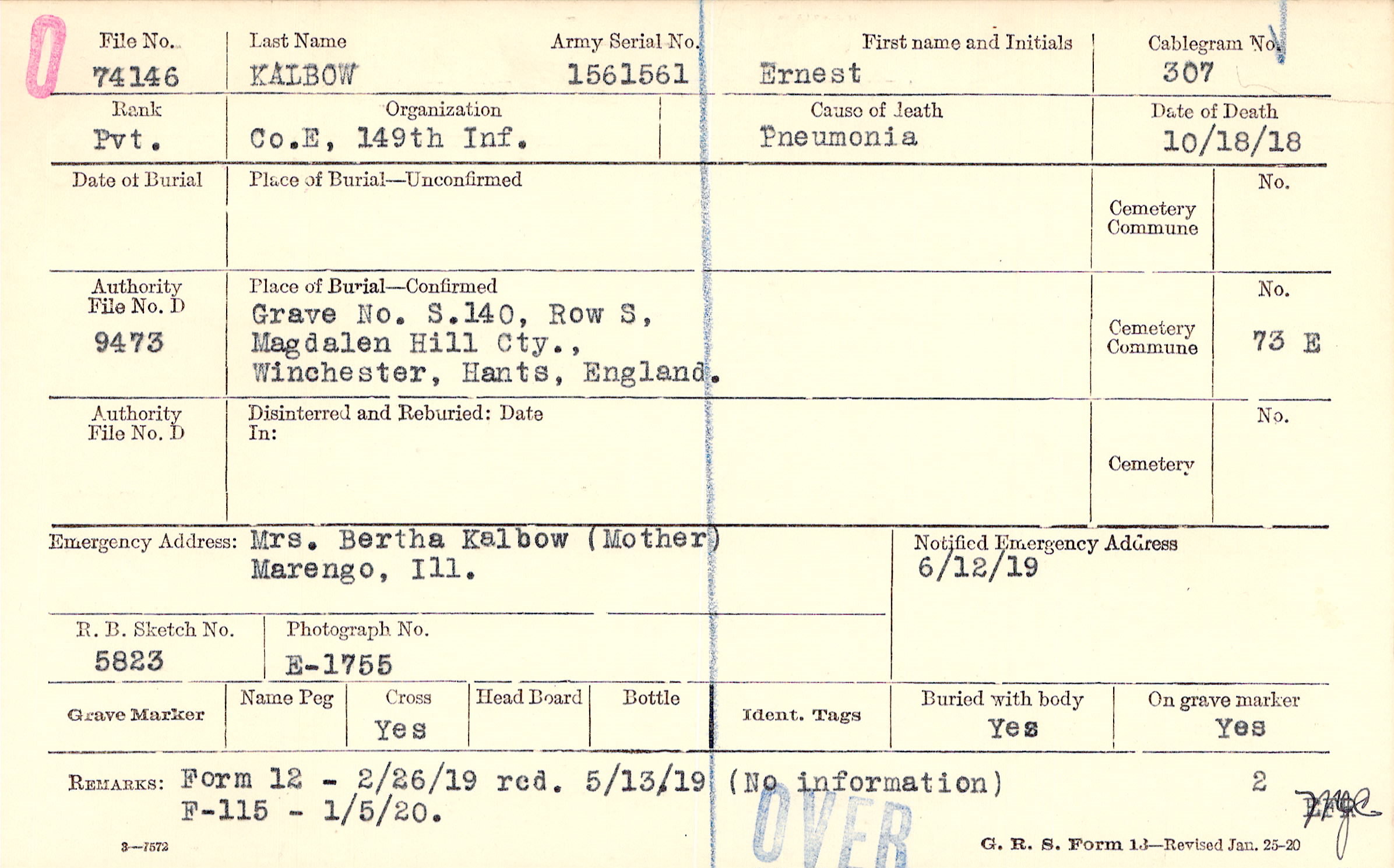 Mrs. Bertha Kalbow (Mother), Marengo, Ill.