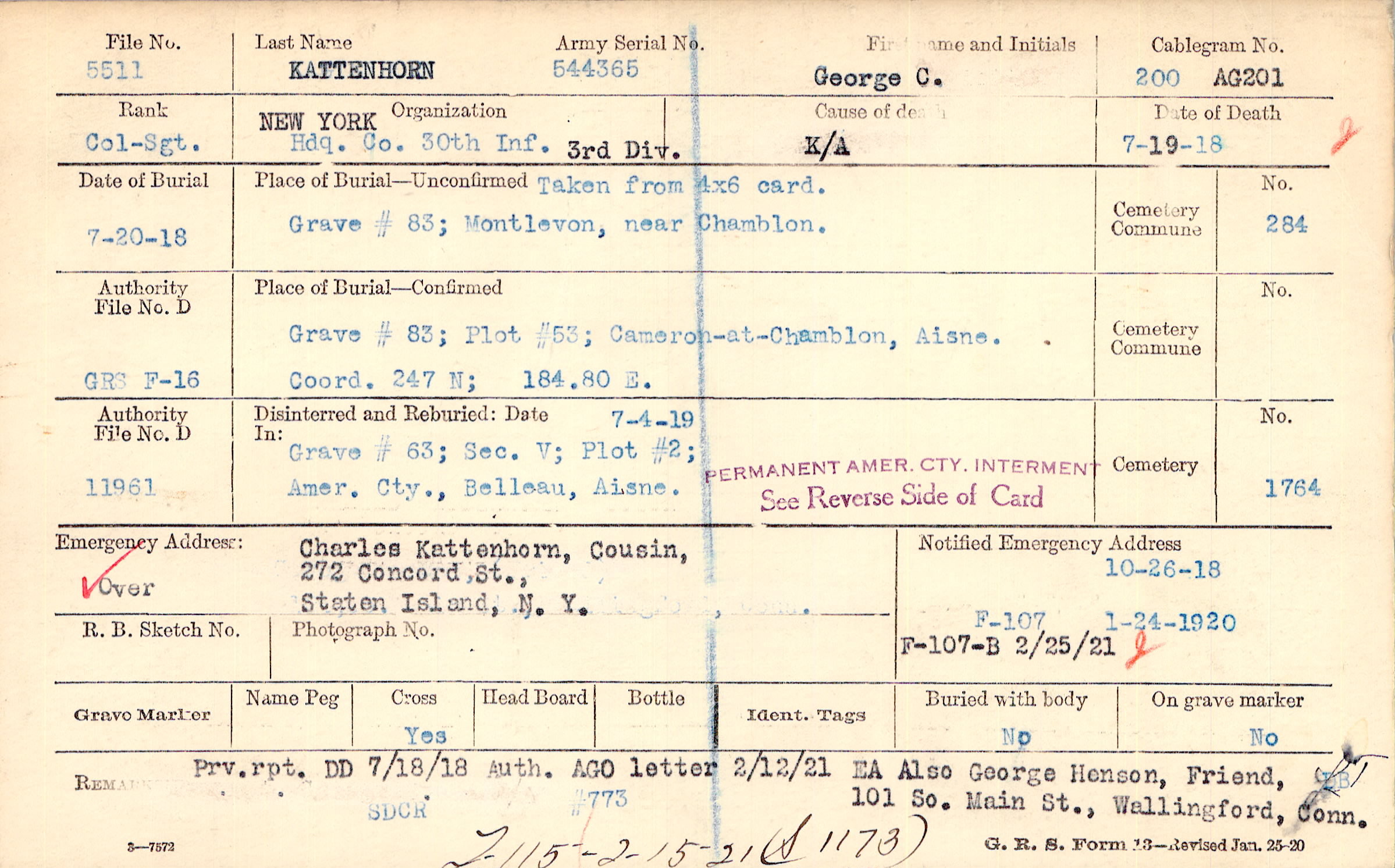 Charles Kattenhorn, Cousin,, 272 Concord St. , Staten Island, N. Y., Over