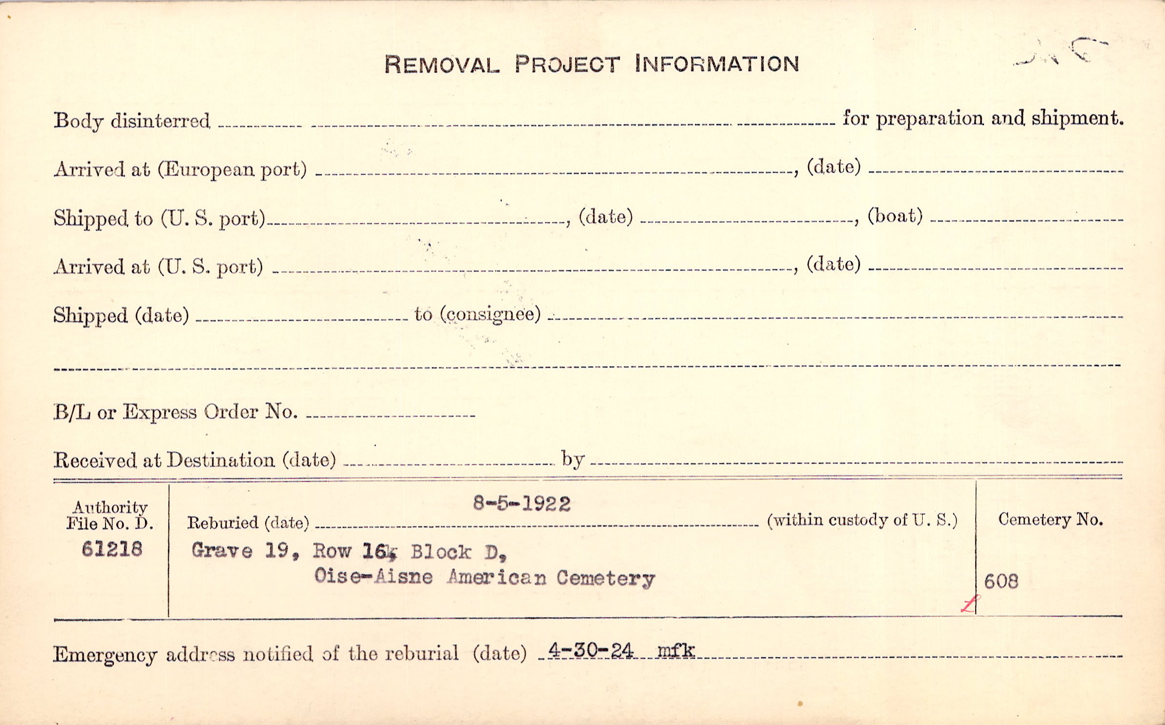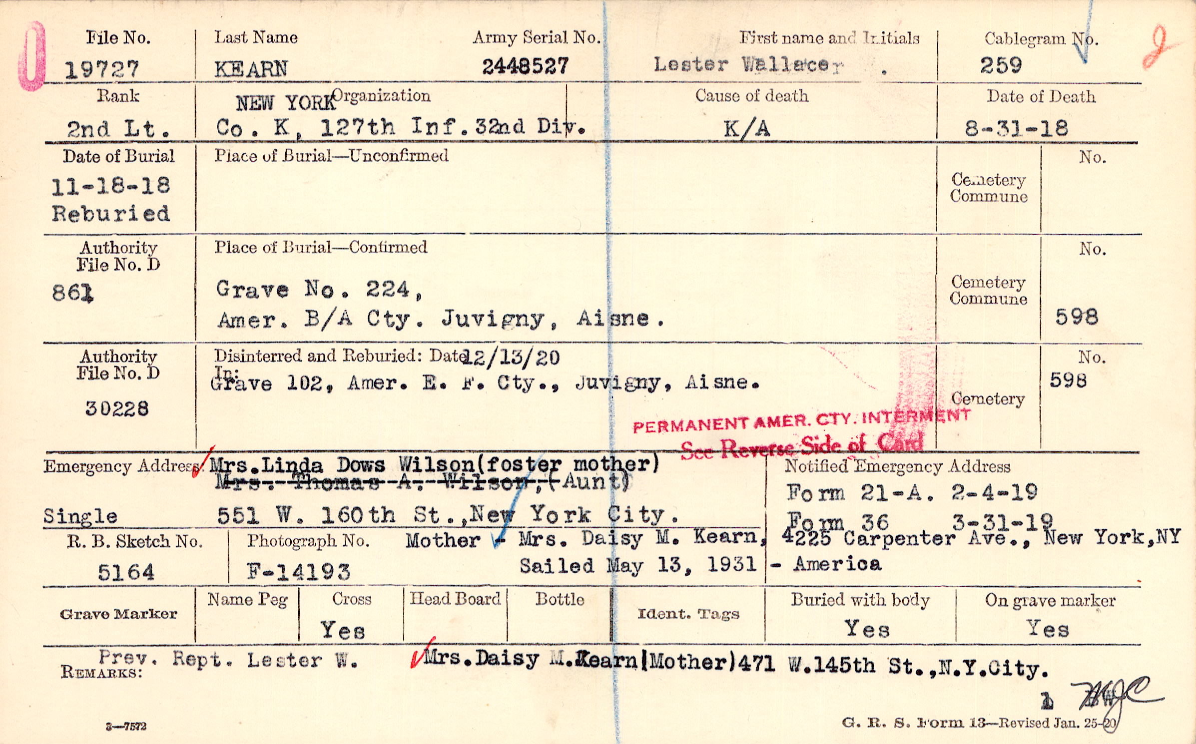 Grave 224, Amer. B/A Cty., Juvigny, Aisne