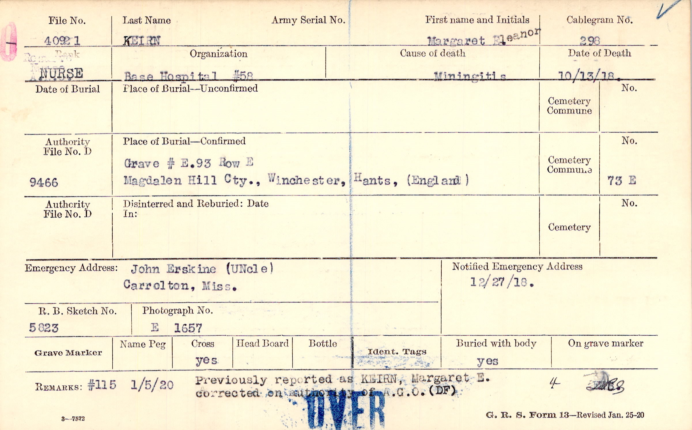 Grave # E.93 Row E Magdalen Hill Cty., Winchester, Hants, (England)