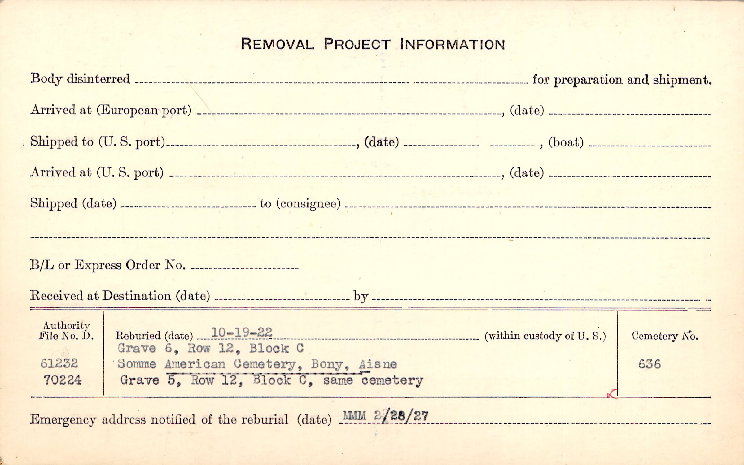Prior Burial in Foreign Cemetery |
