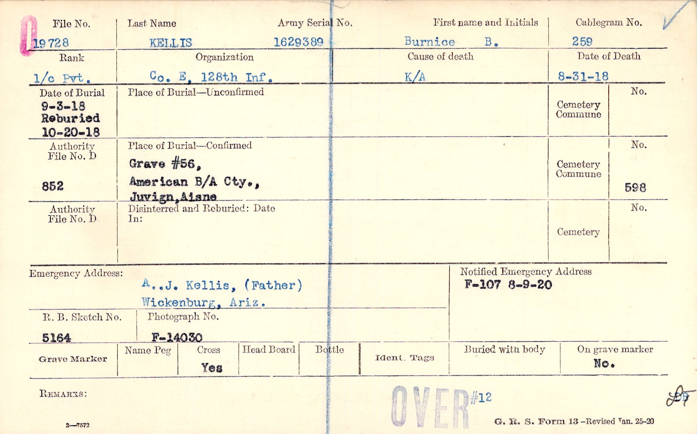Grave #56, American B/A Cty., Juvign, Aisne