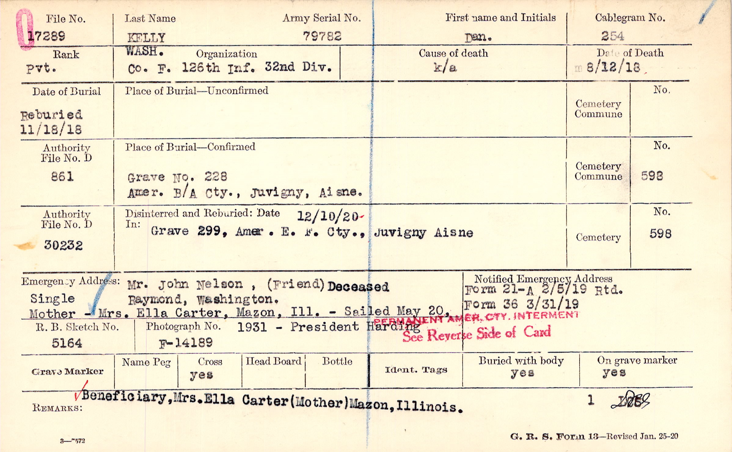 Grave 228, Amer. B/A Cty., Juvigny, Aisne.