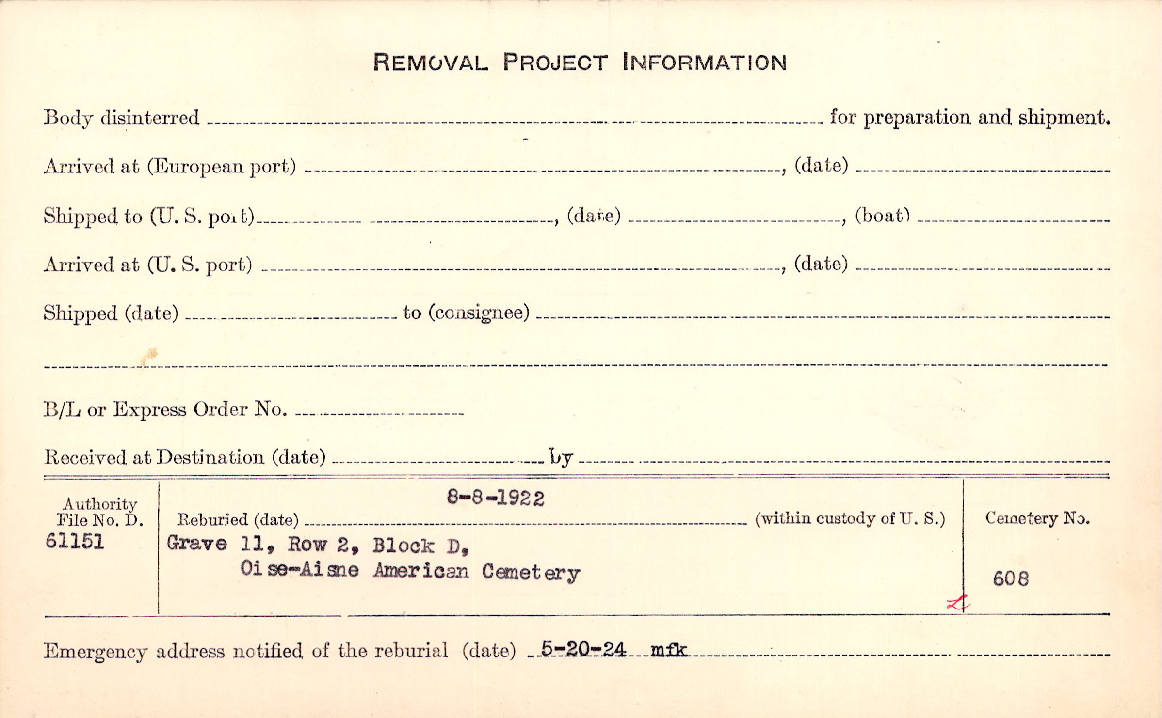 | Permanent Burial in Foreign Cemetery |