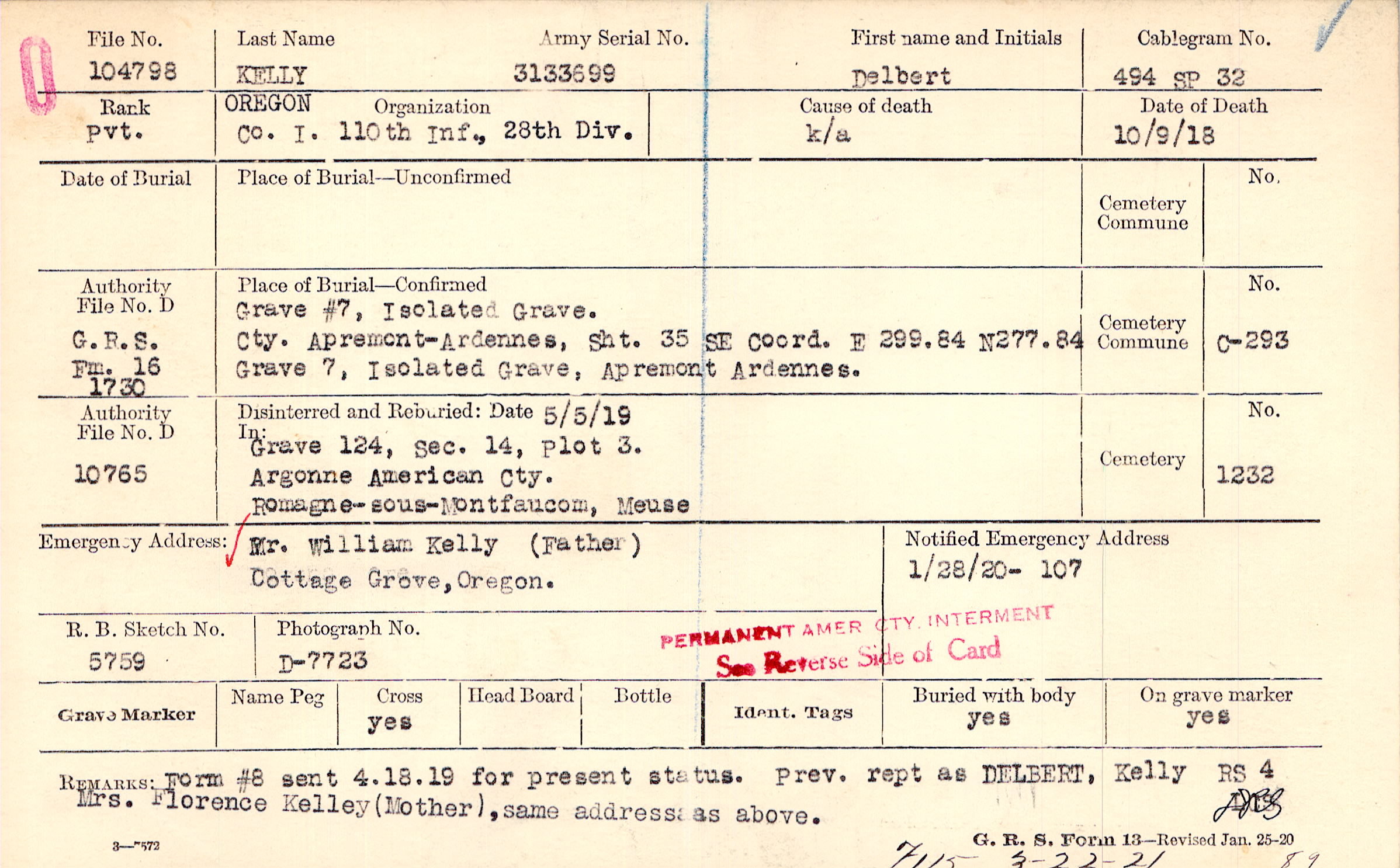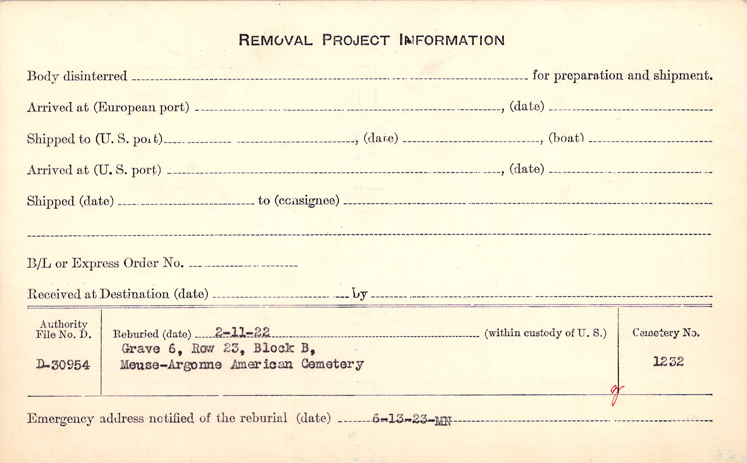 Grave 124, Section 14, Plot 3, Argonne American Cemetery, Romagne-sous-Montfaucon, Meuse