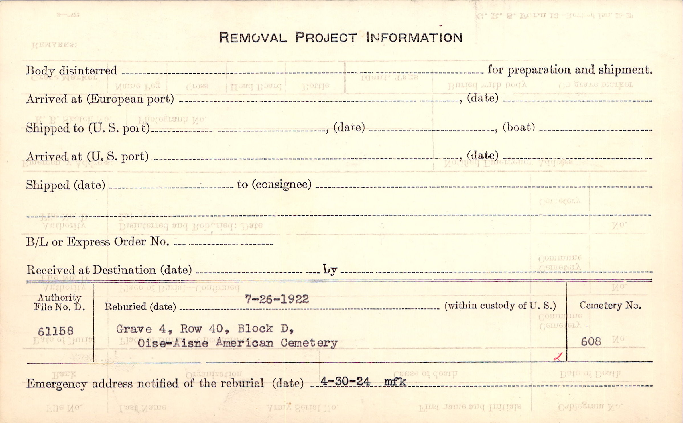 Grave 222, Amer. B/A Cty., Juvigny, Aisne