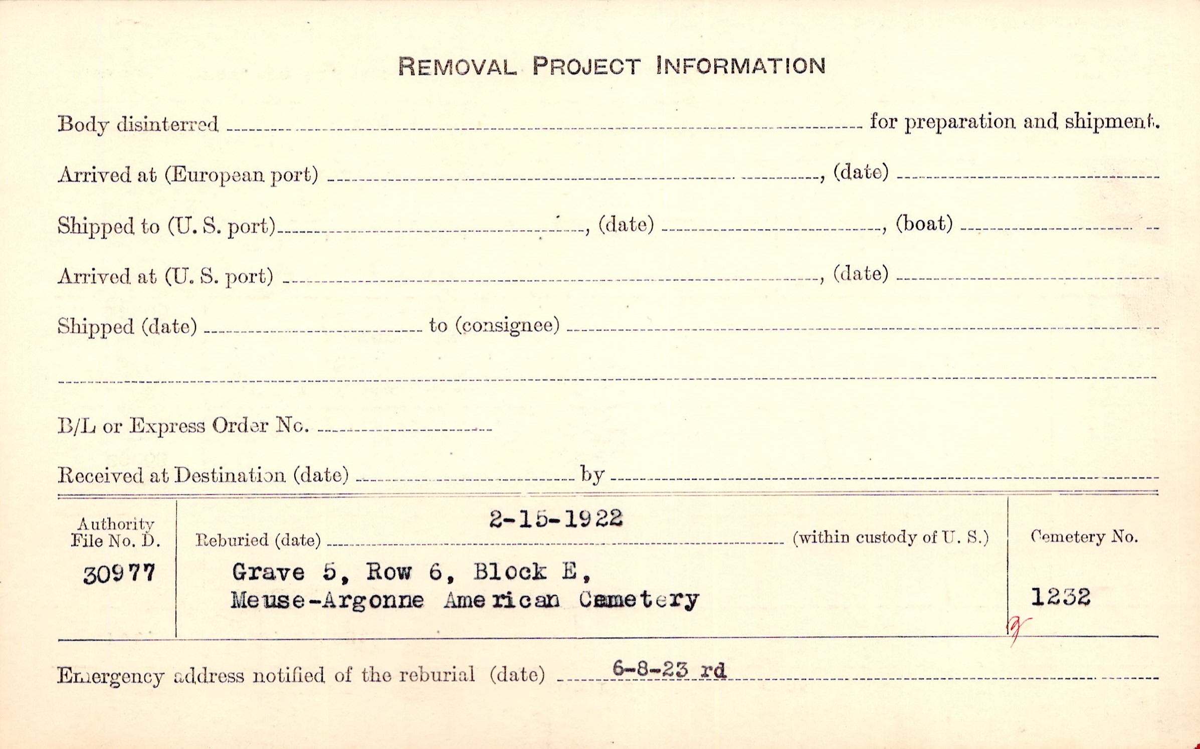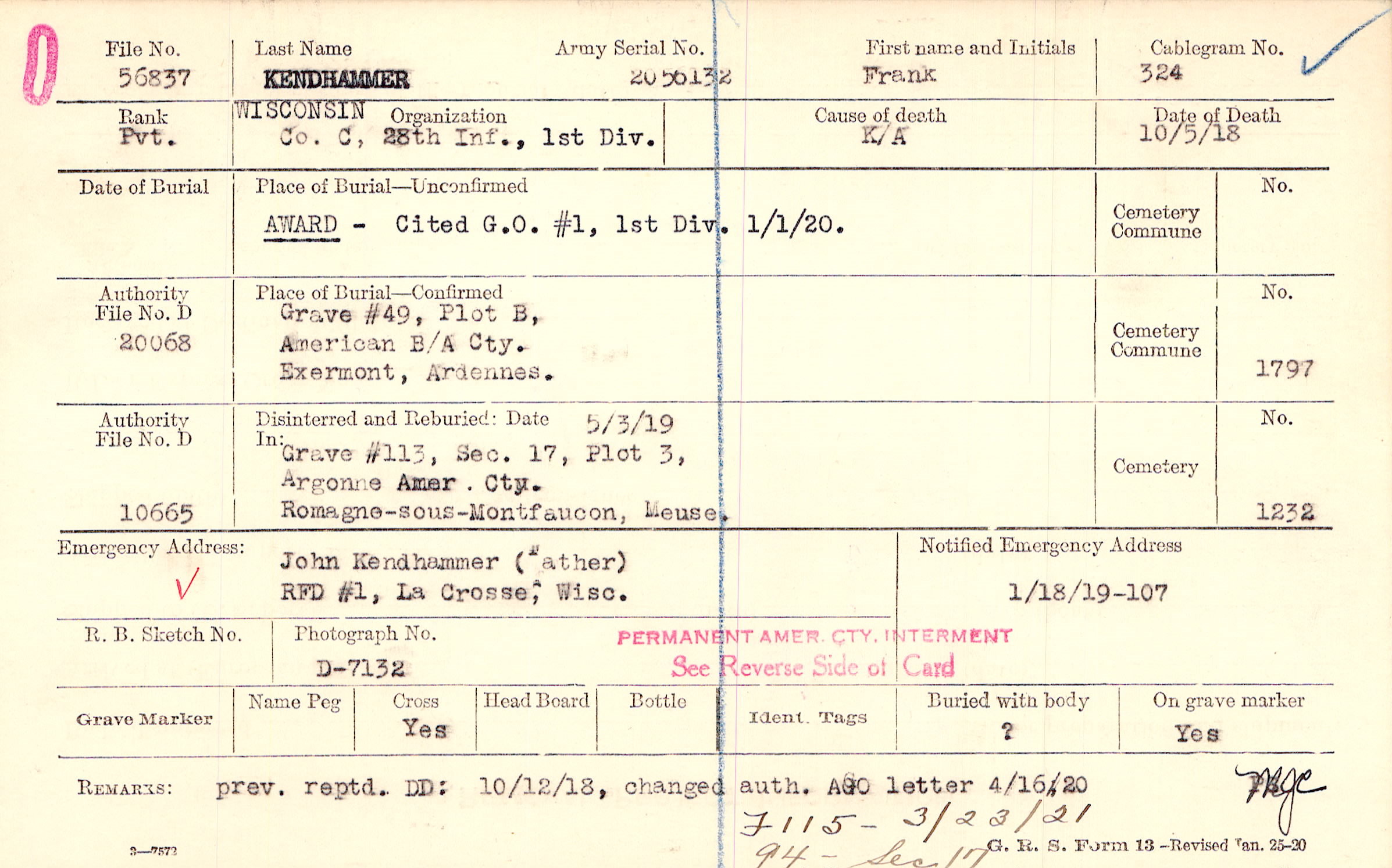 Grave #49, Plot B, American B/A Cty., Exermont, Ardennes.