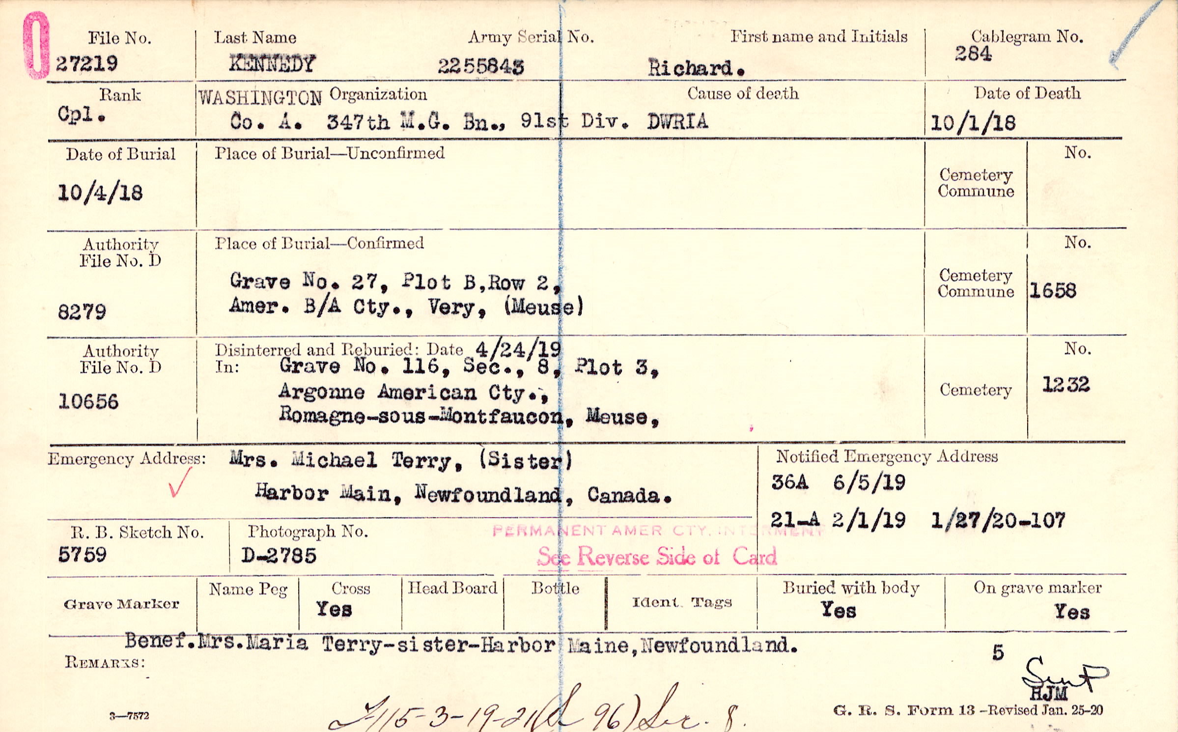 Mrs. Michael Terry, (Sister), Harbor Main, Newfoundland, Canada.