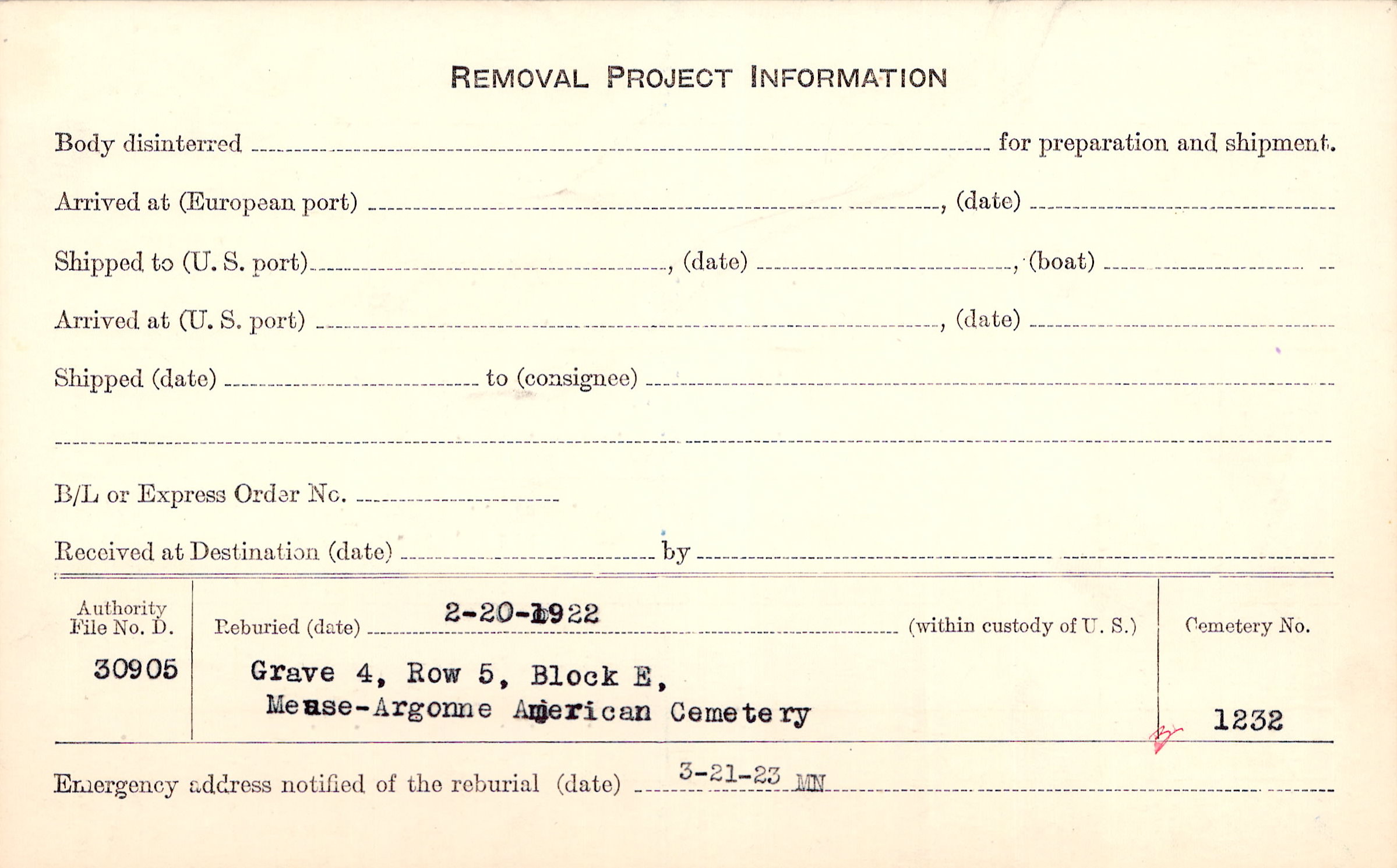 Grave 116, Section 8, Plot 3, Argonne American Cemetery, Romagne-sous-Montfaucon, Meuse