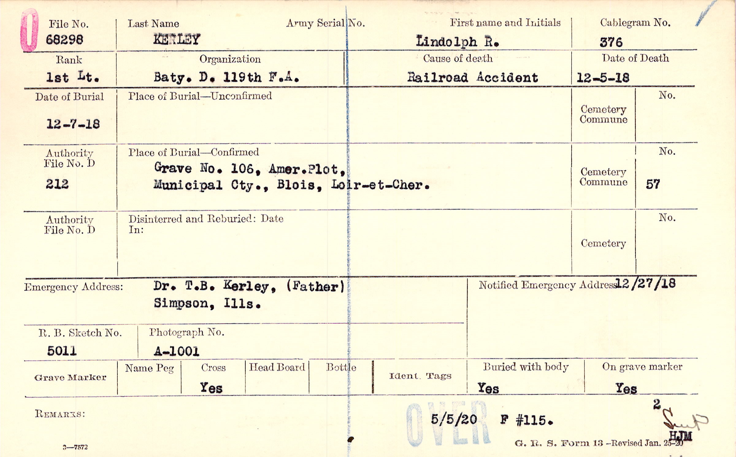 Grave 106, Amer. Plot, Municipal Cty., Blois, Loir-et-Cher