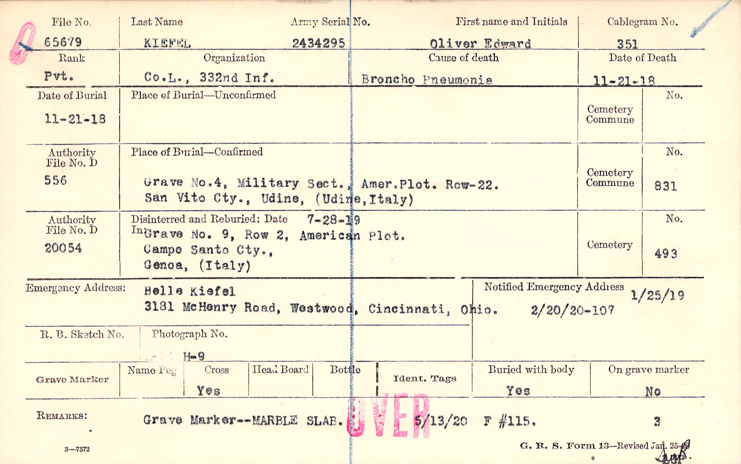 Grave 4, Military Sect., Amer. Plot., Row-22, San Vito Cty., Udine, Udine, Italy