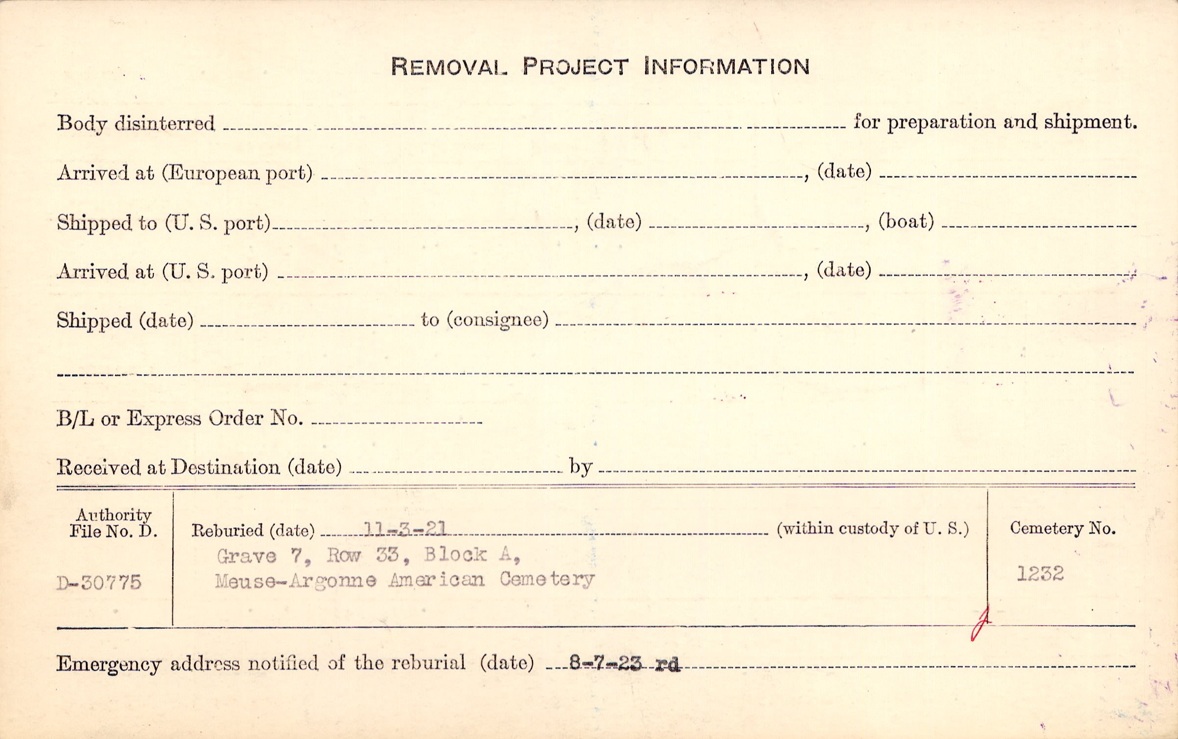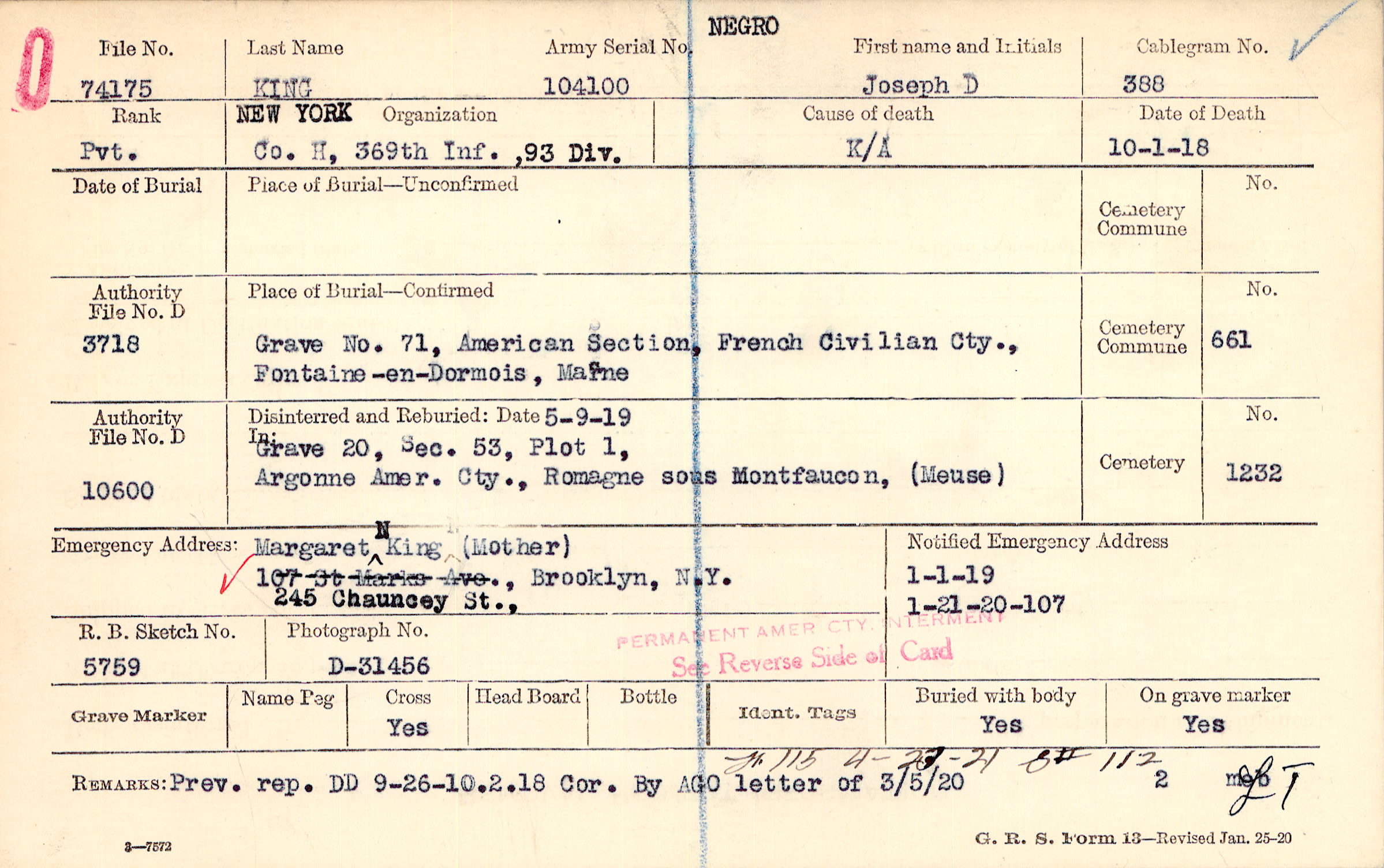 Grave 71, American Section, French Civilian Cty., Fontaine-en-Dormois, Marne