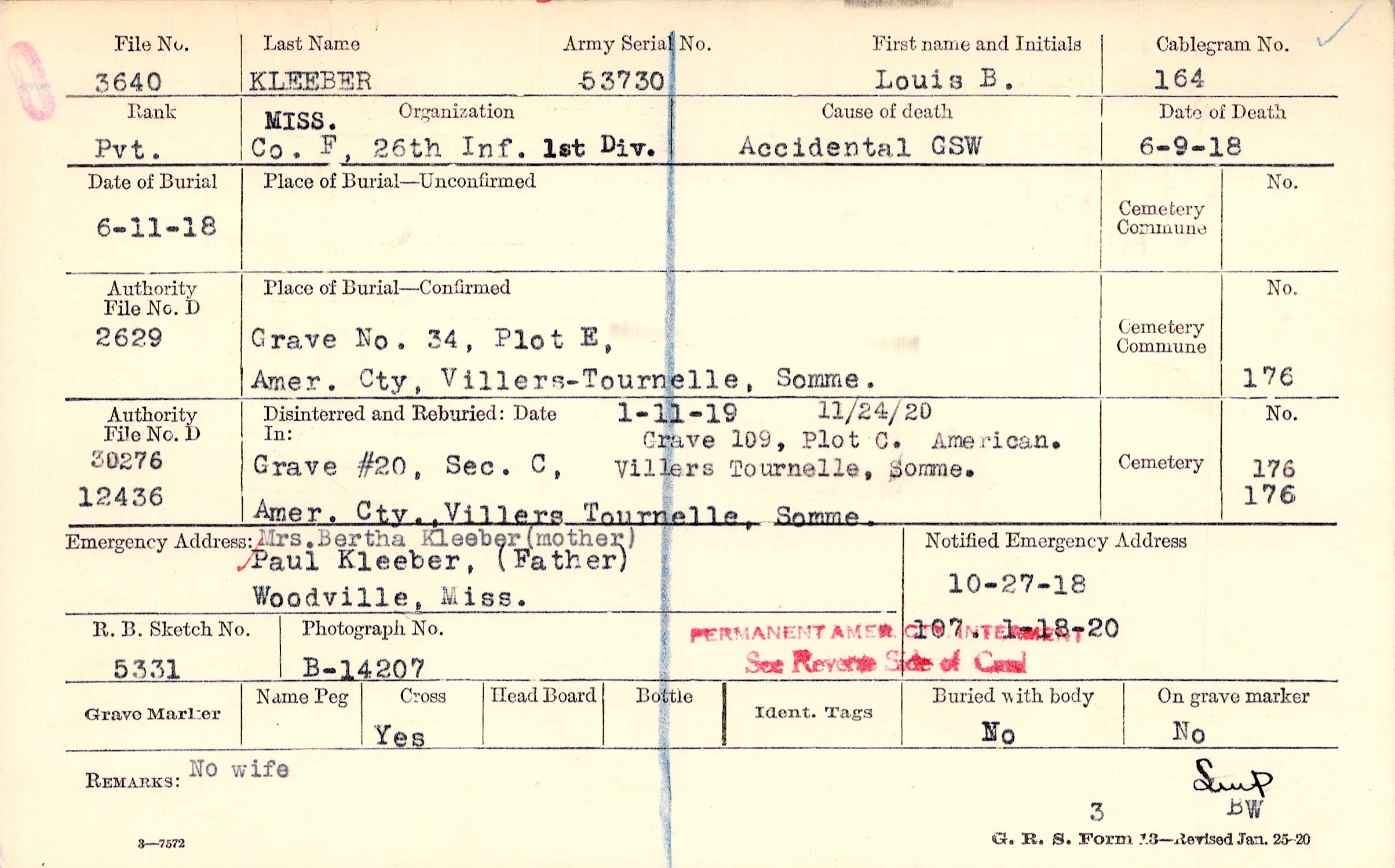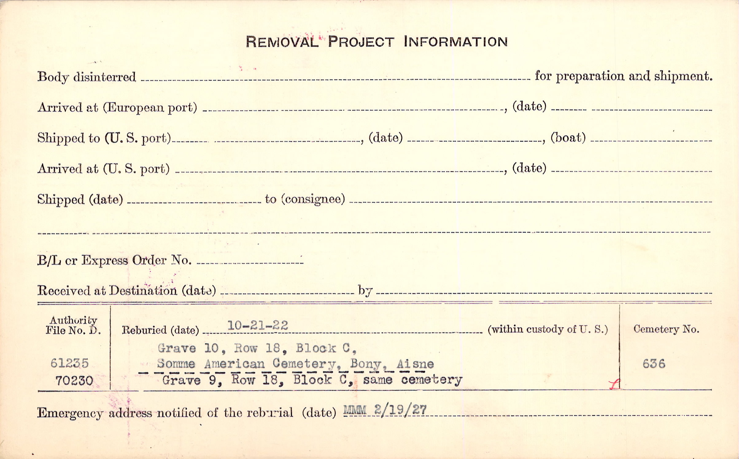 Prior Burial in Foreign Cemetery |