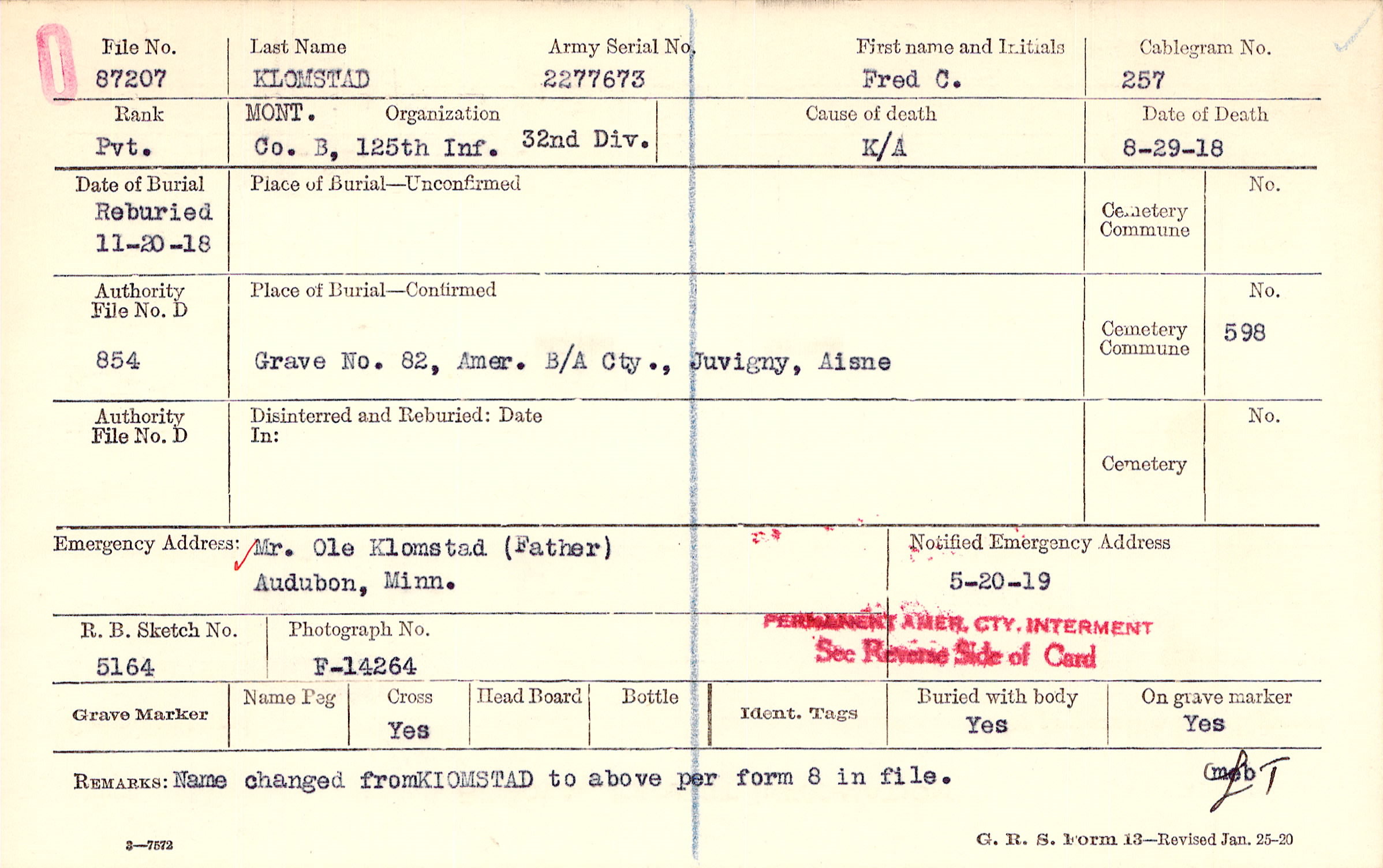 Grave 82, Amer. B/A Cty., Juvigny, Aisne