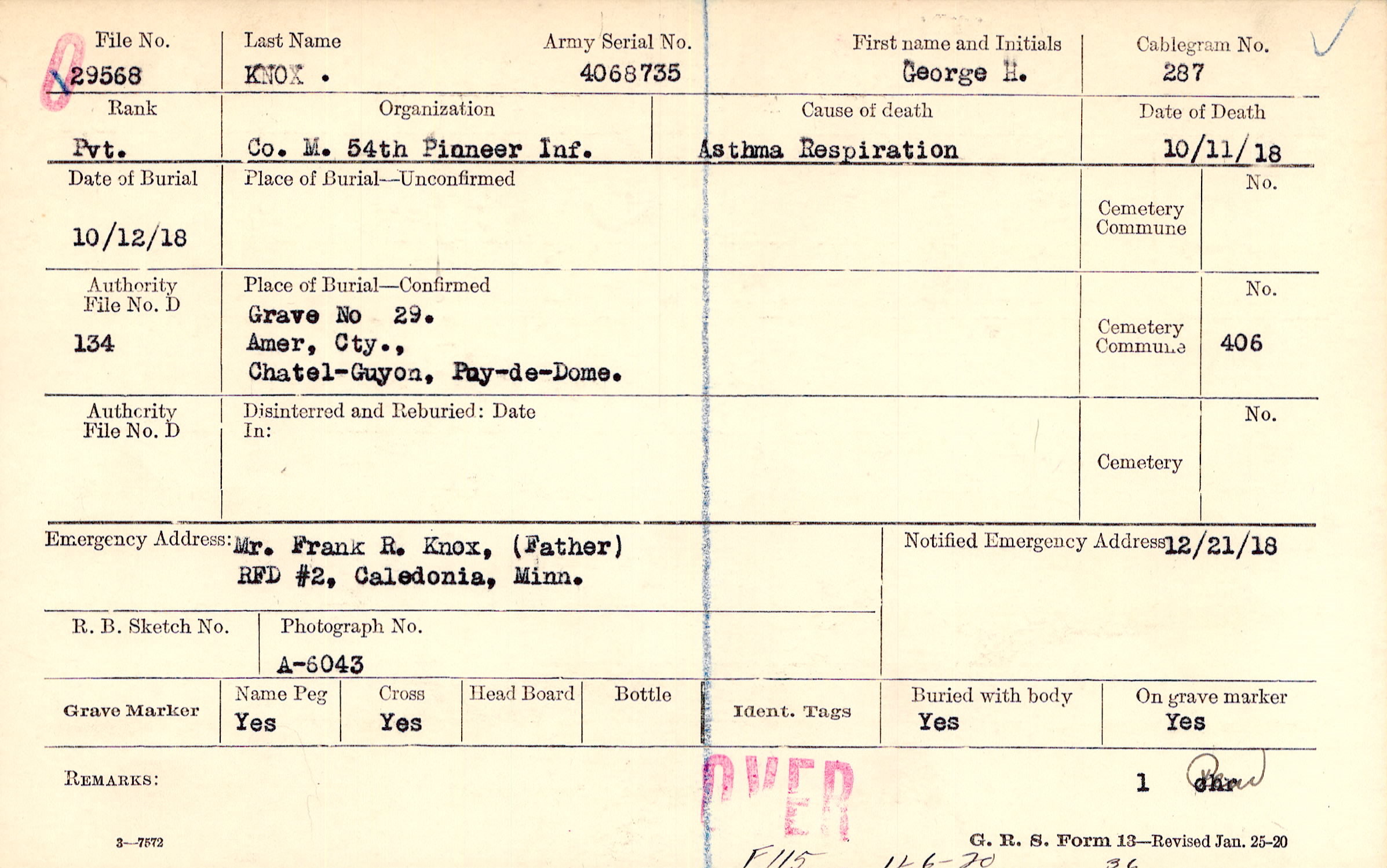 Grave 29, Amer. Cty., Chatel-Guyon, Puy-de-Dome.