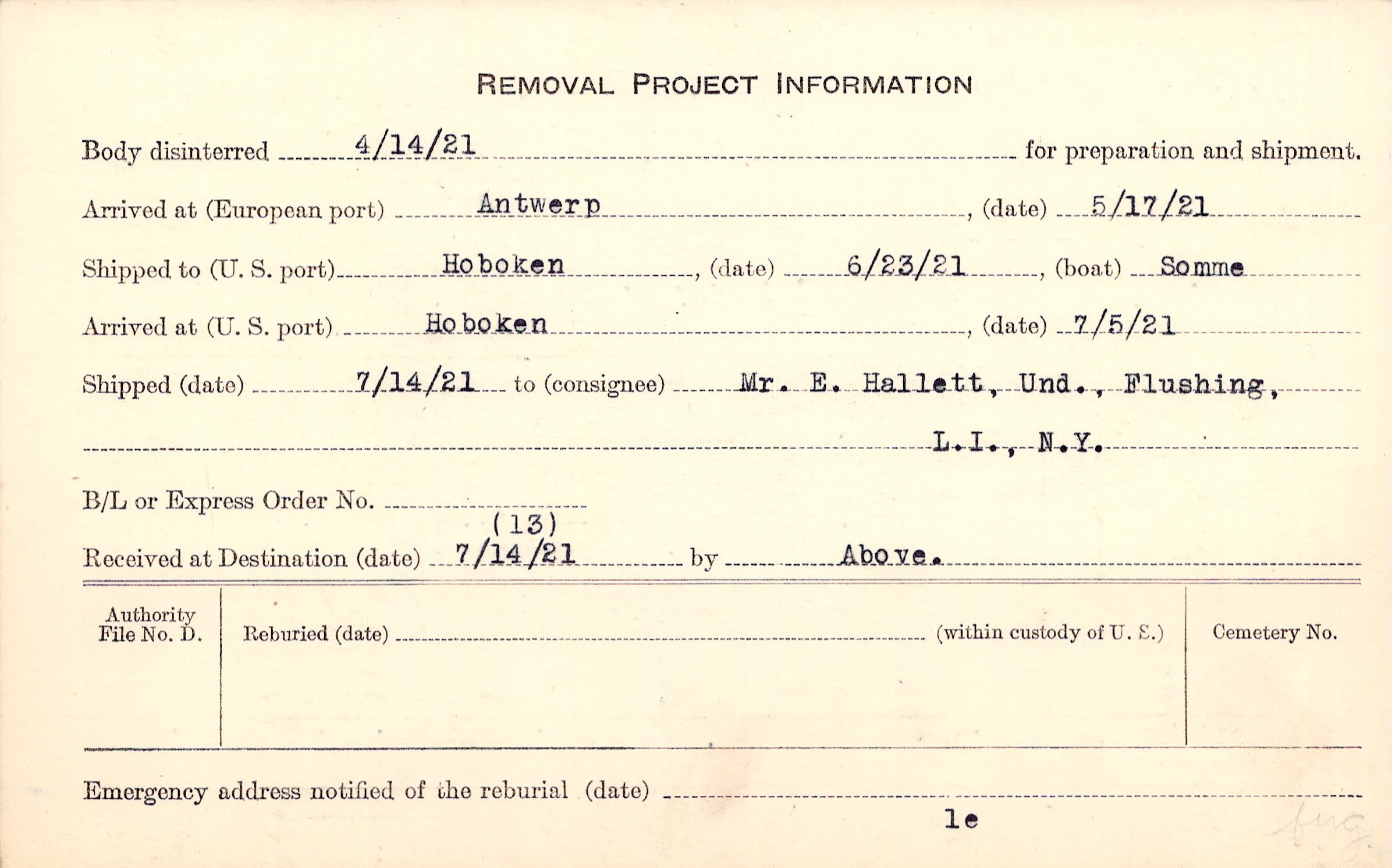 to Mr. E. Hallett, Und., Flushing, L.I., N.Y.