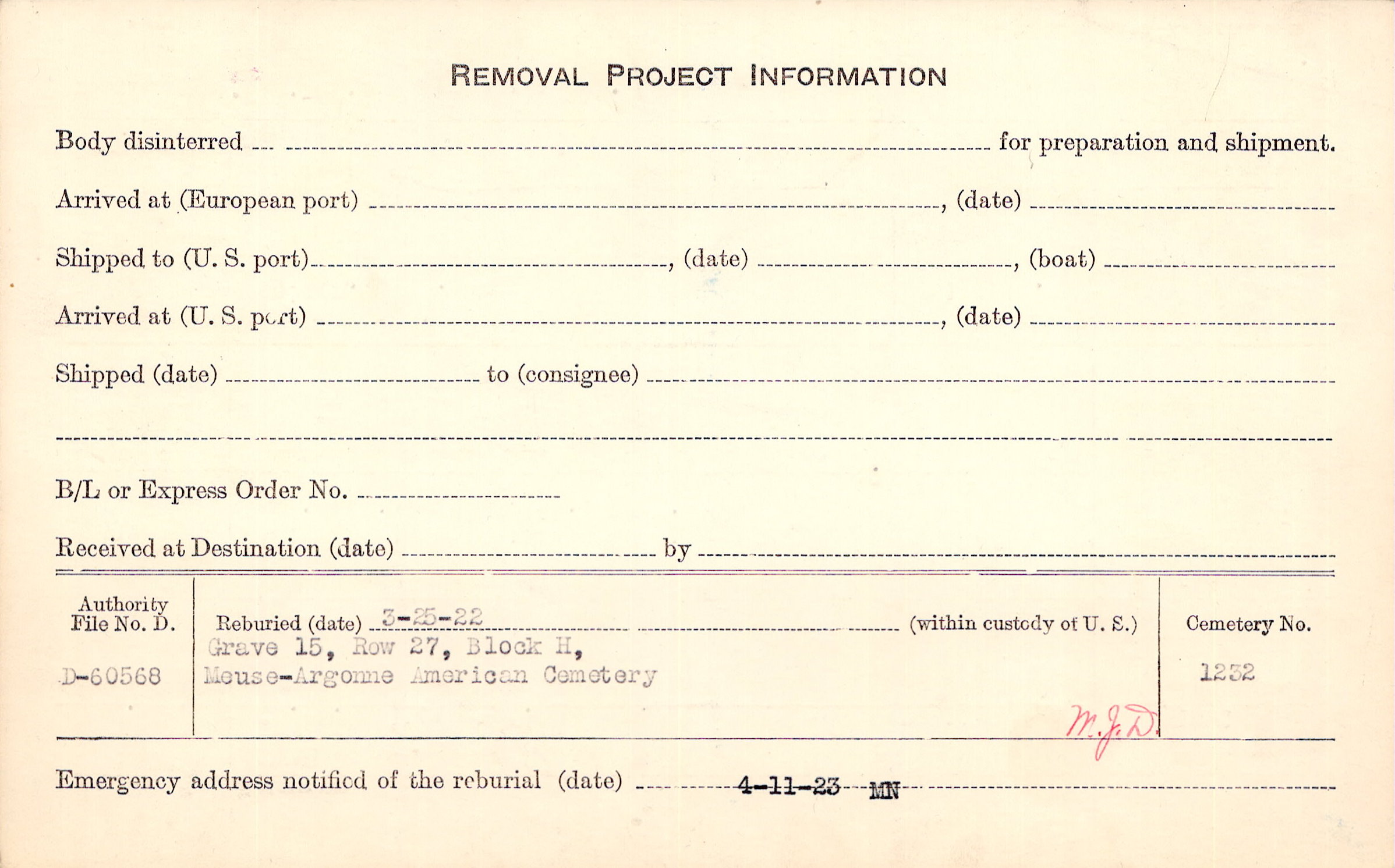 | Permanent Burial in Foreign Cemetery |