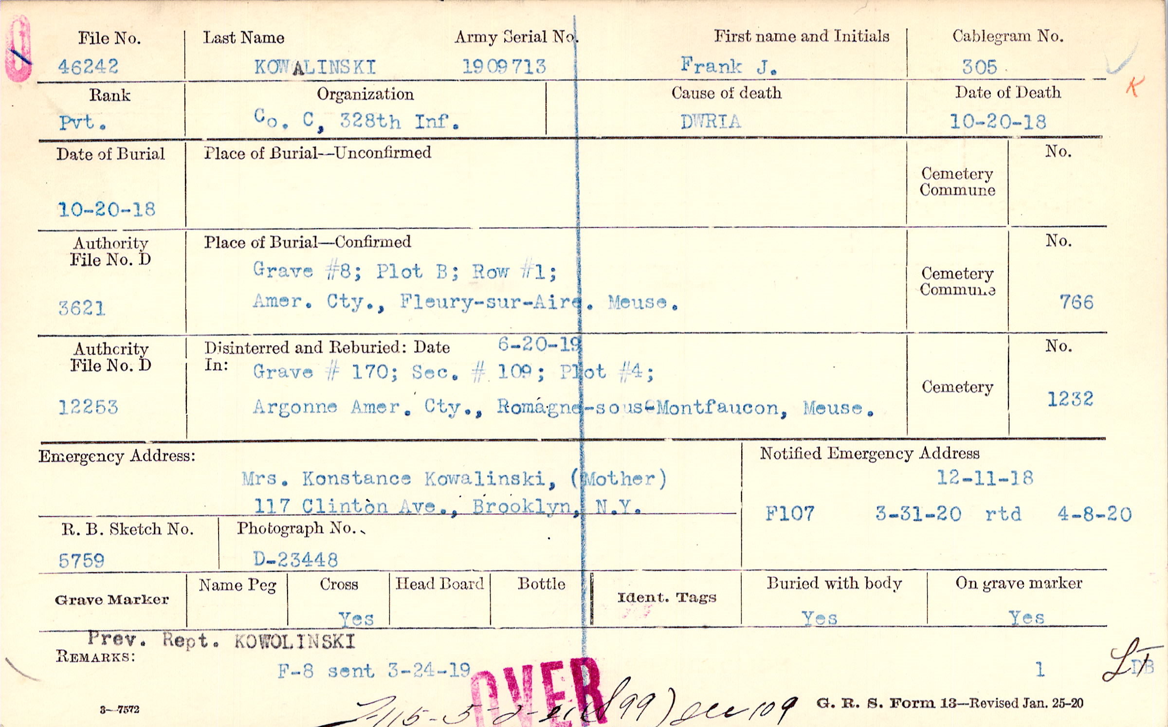12/11/1918, Form 107: 3/31/1920 rtd 4/8/1920