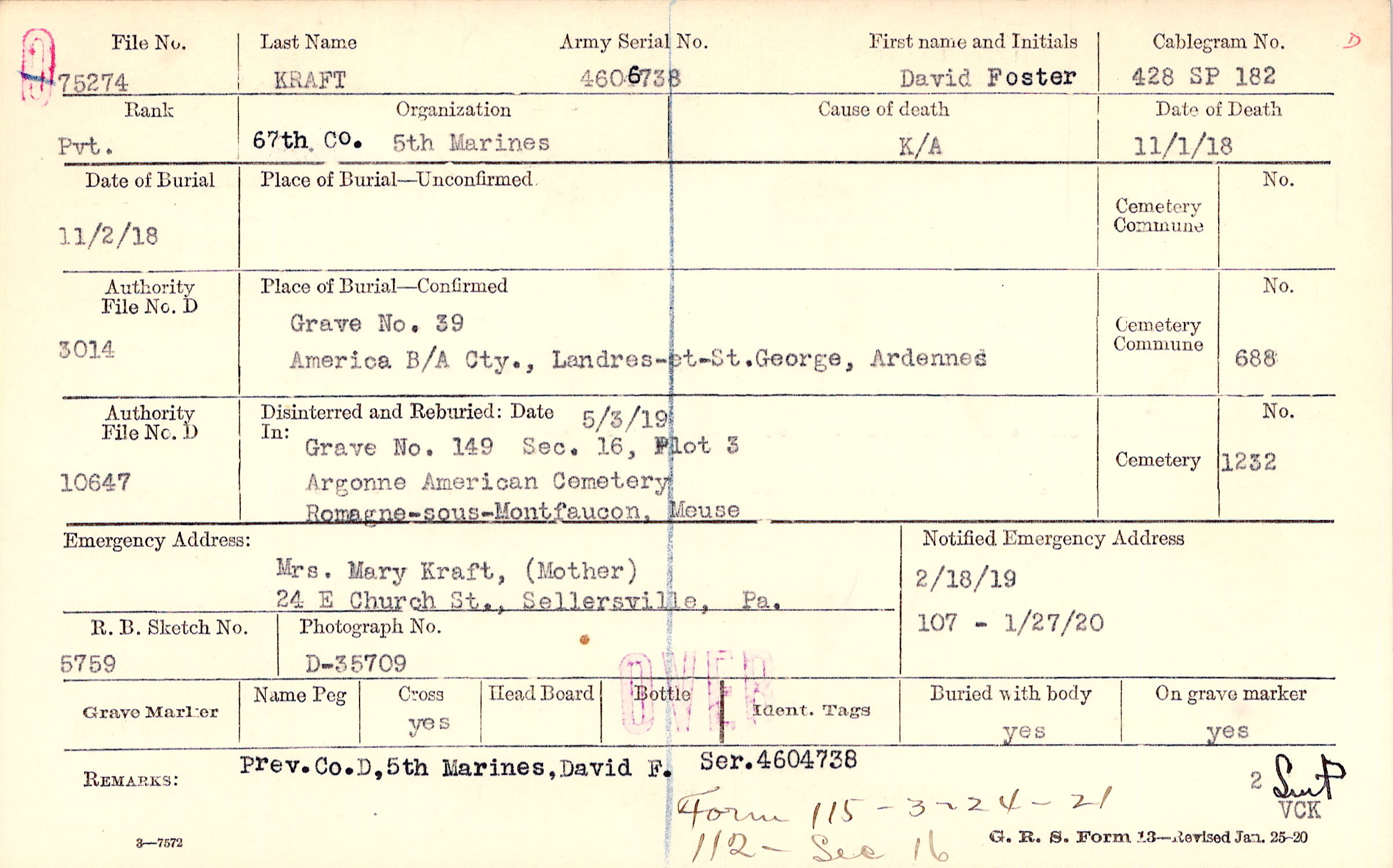 Prev. Co. D, 5th Marines, David F. Ser. 4604738, Form 115 - 3-24-21 112 - Sec 16