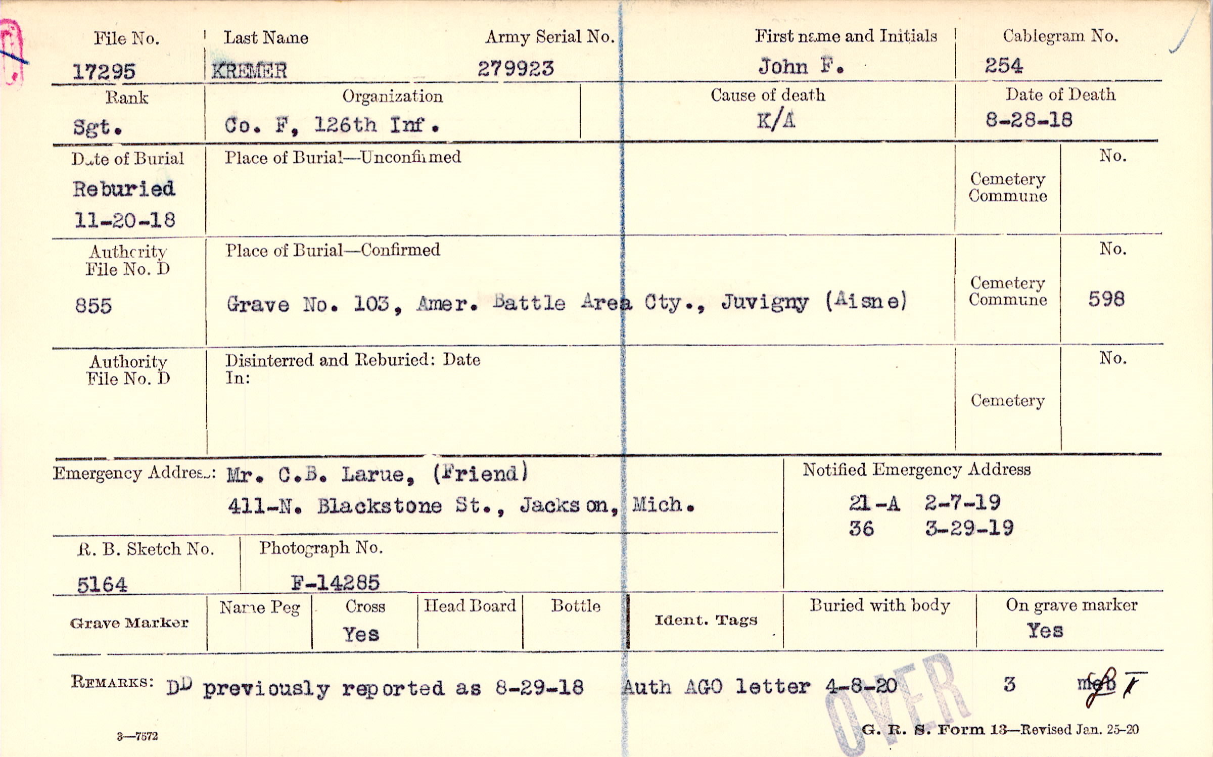 Grave 103, Amer. Battle Area Cty., Juvigny, Aisne