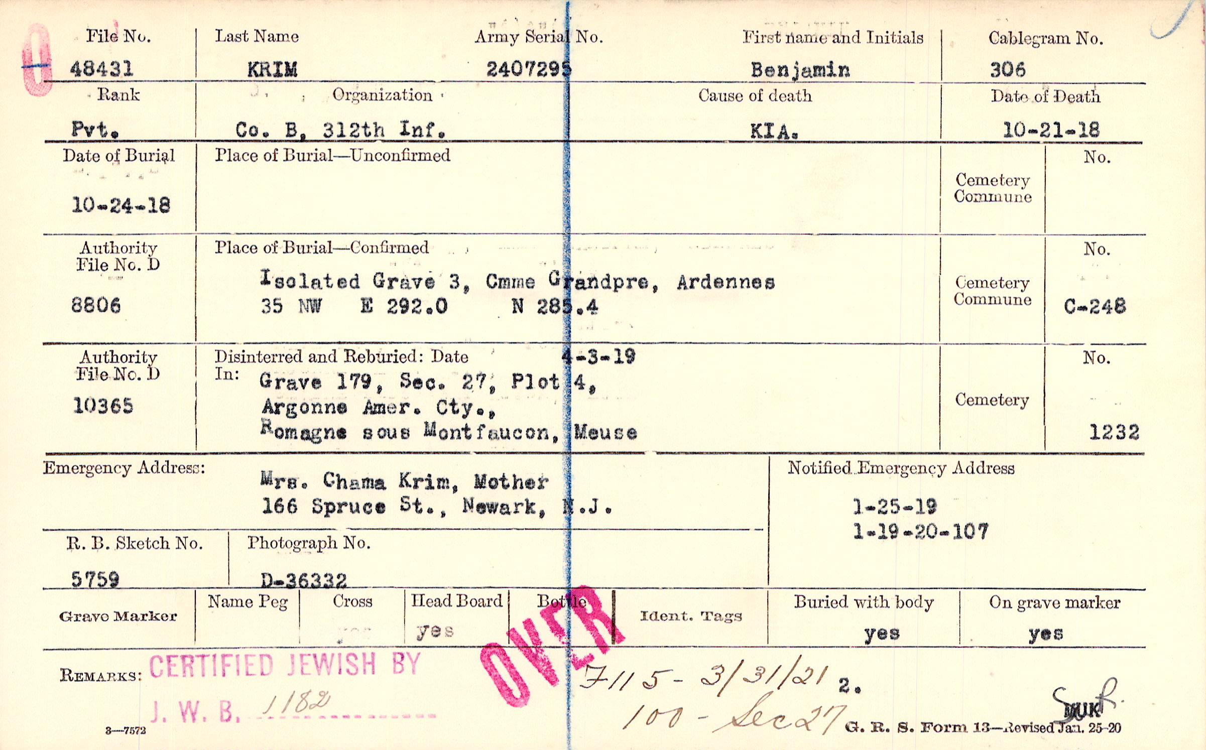 Army Serial No. |