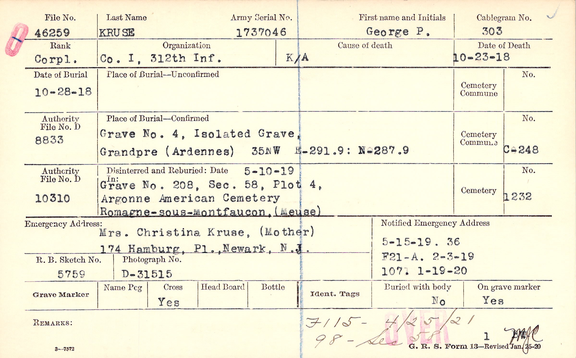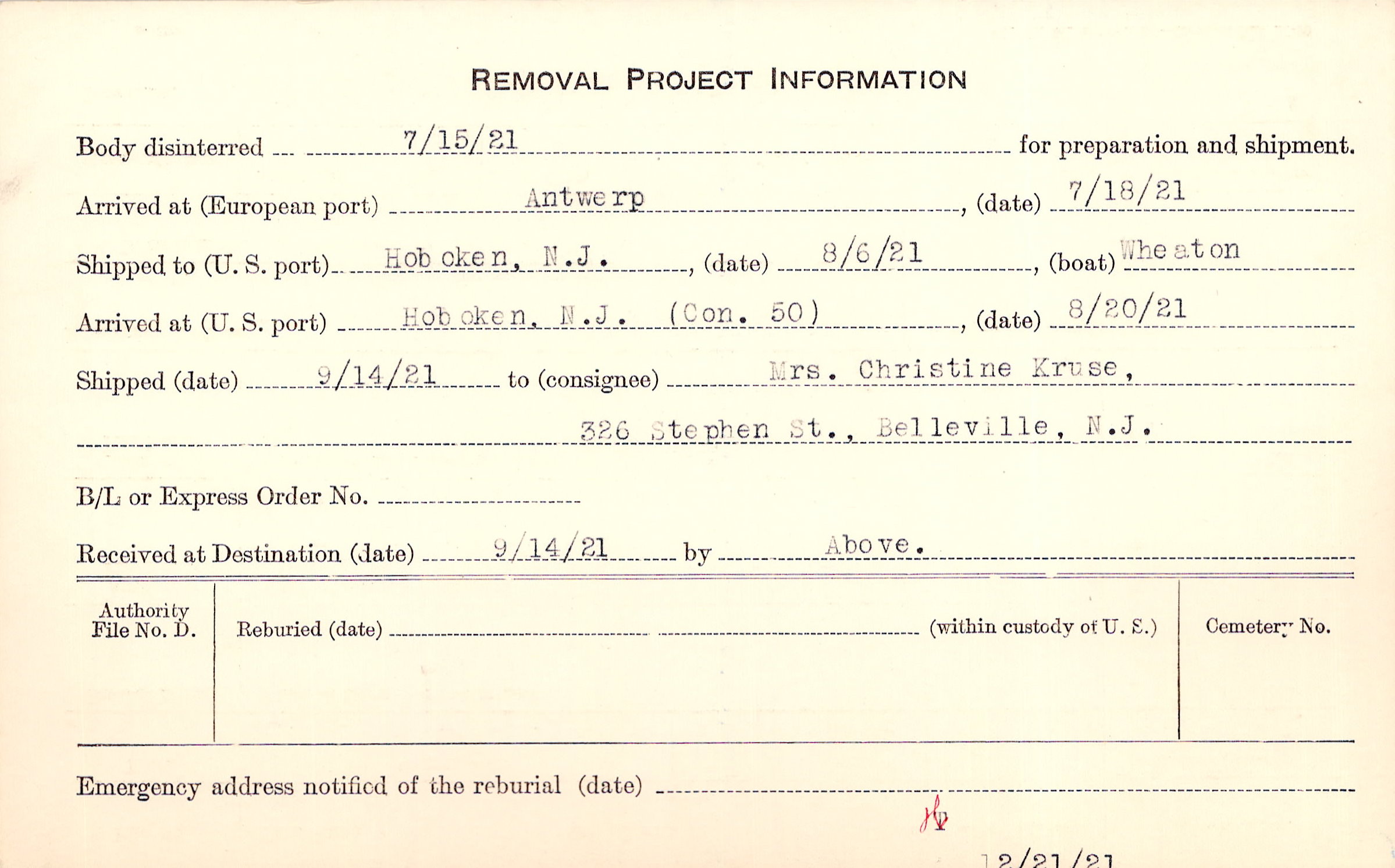 Mrs . Christina Kruse, (Mother), 174 Hamburg, Pl . ,Newark, N .J.