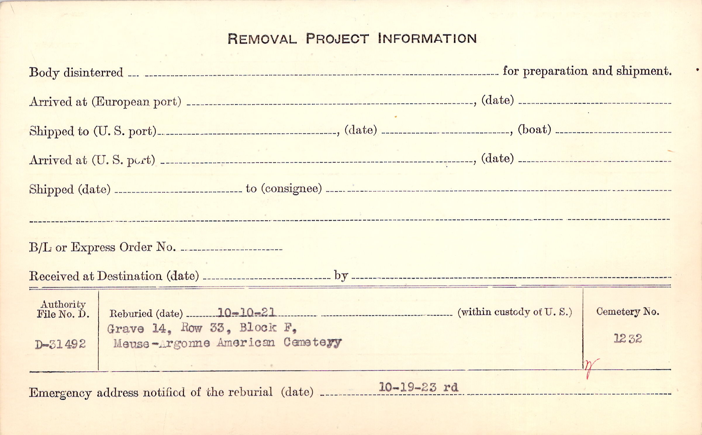 | Permanent Burial in Foreign Cemetery |