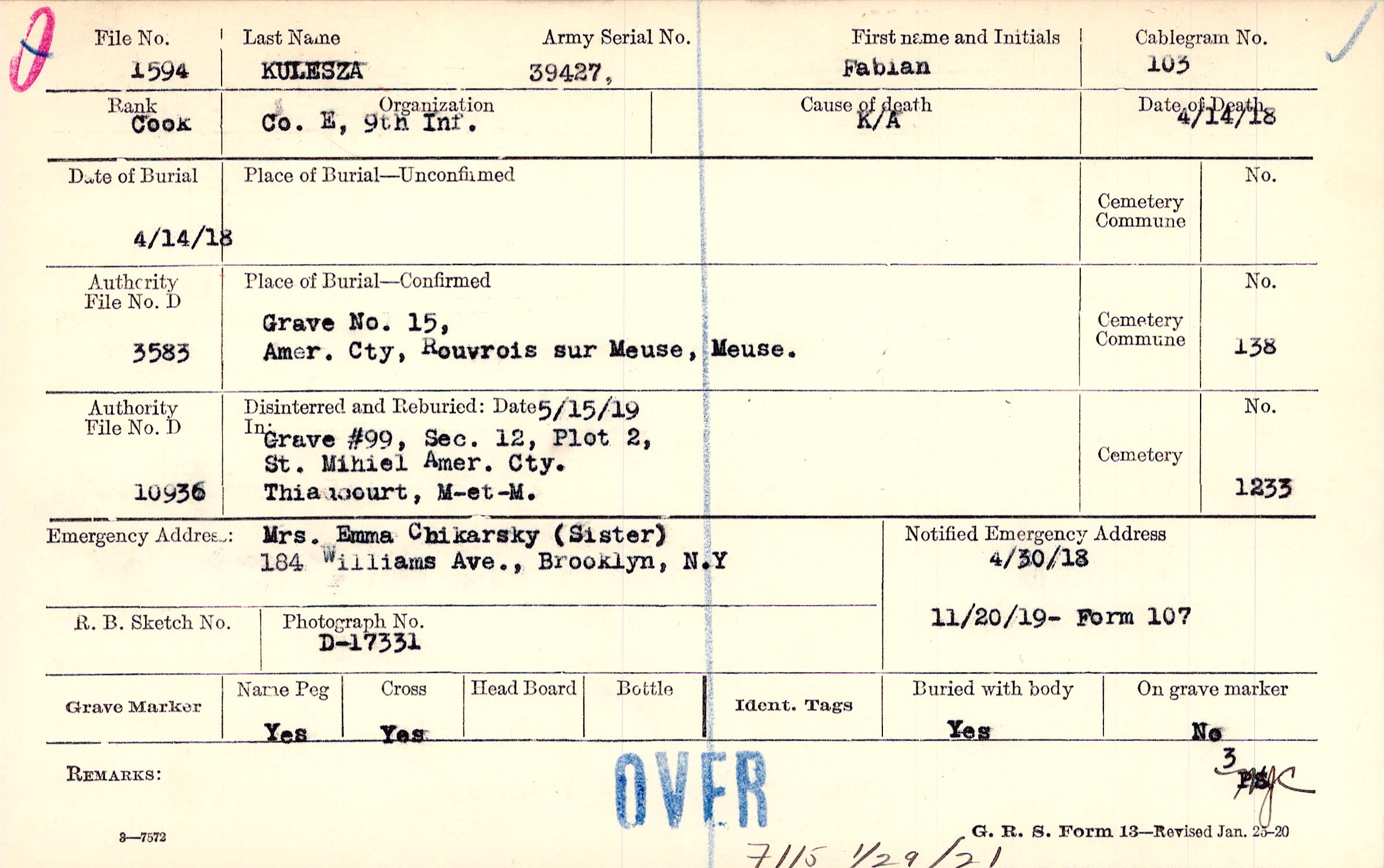 4/30/1918, Form 107: 11/20/1919