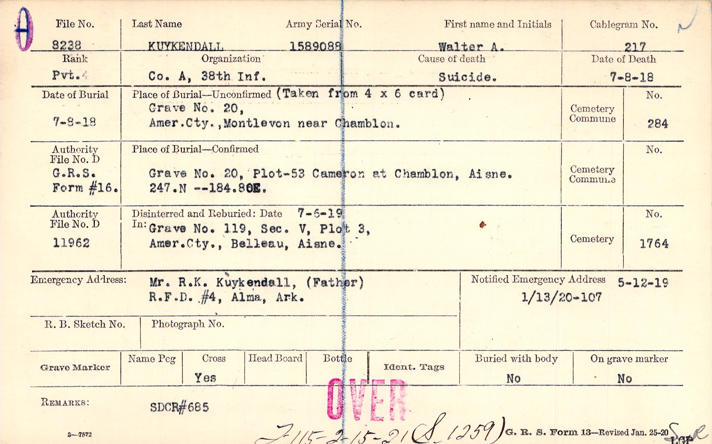 Mr. R.K. Kuykendall, (Father), R.F.D. #4, Alma, Ark.