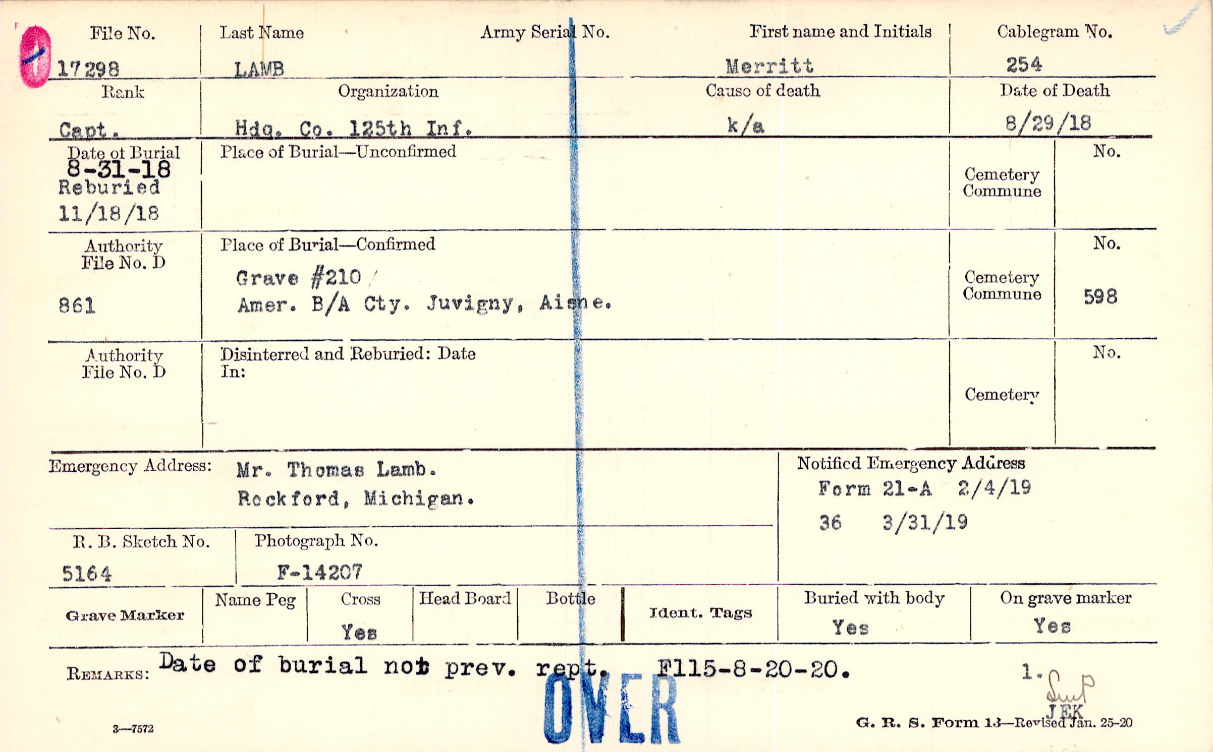 8/31/1918, Reburied 11/18/1918
