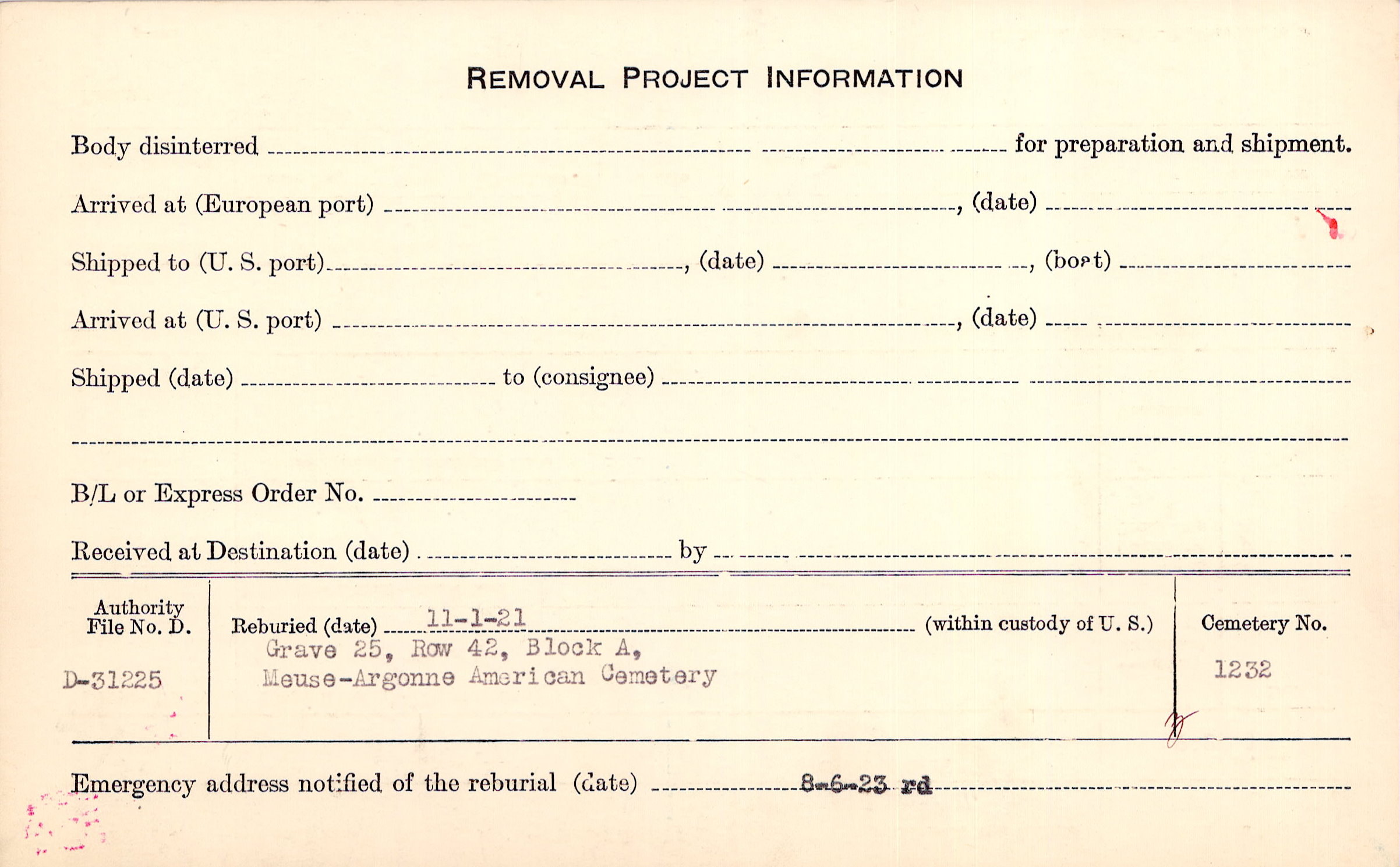 | Permanent Burial in Foreign Cemetery |