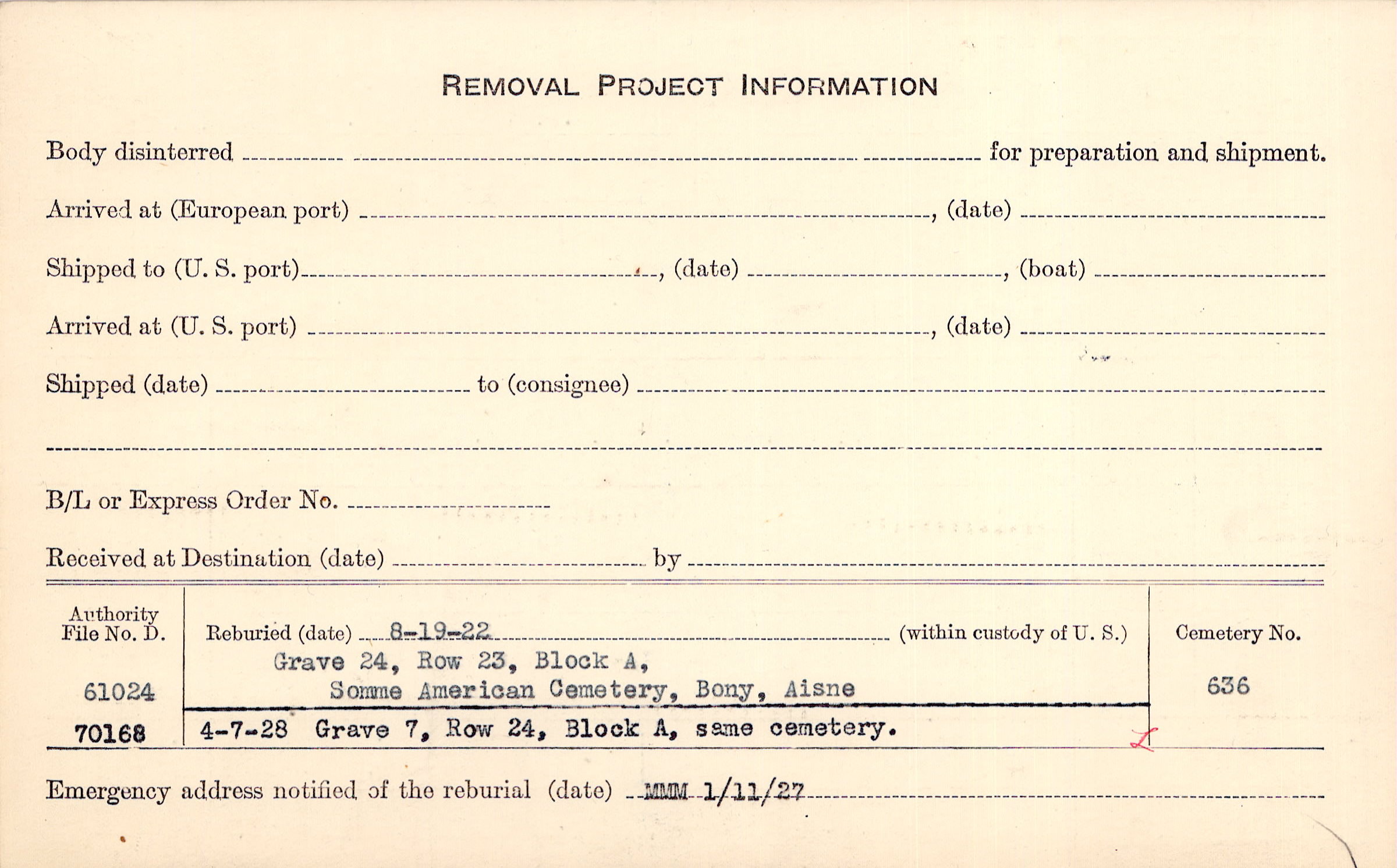 Prior Burial in Foreign Cemetery |