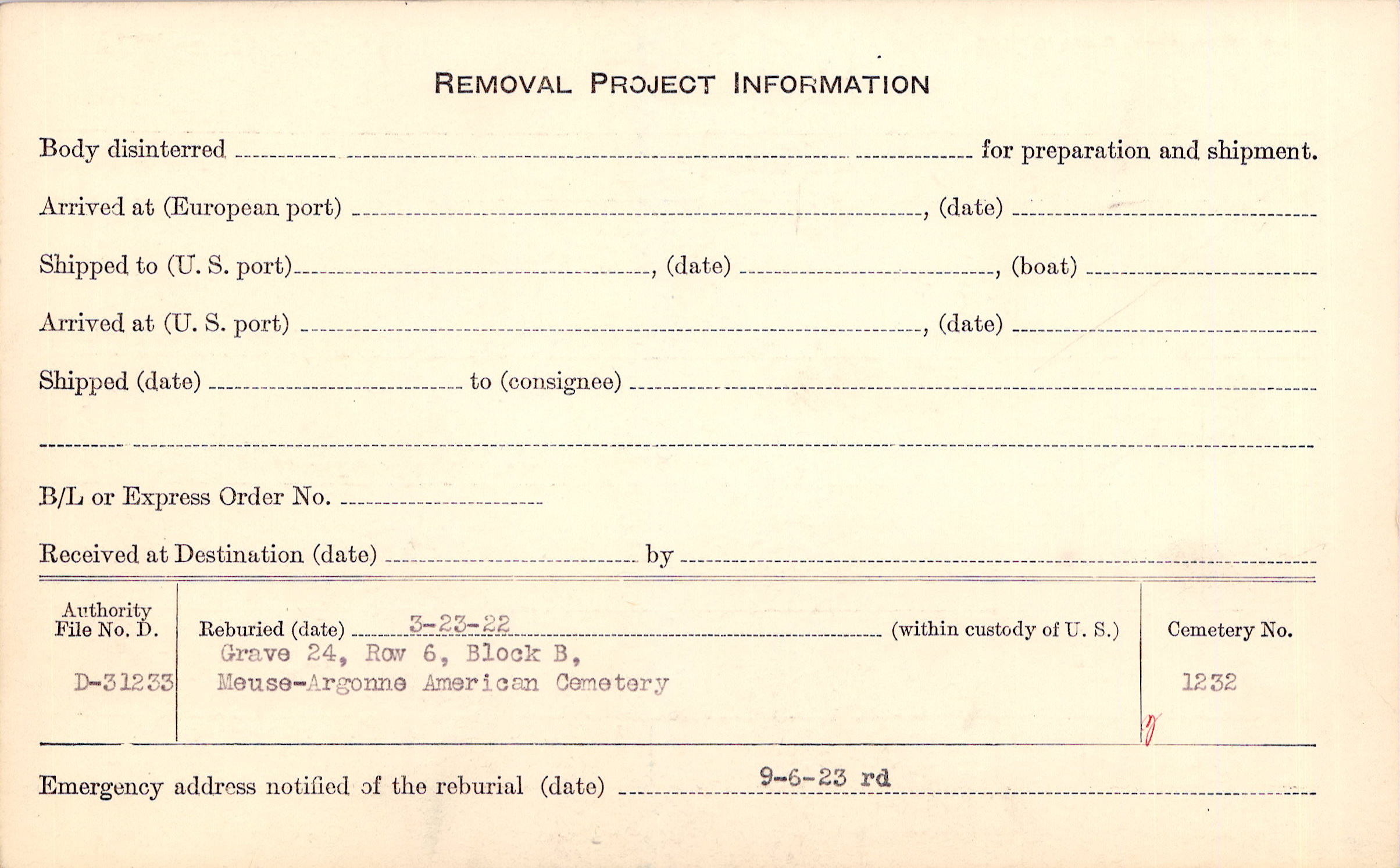| Permanent Burial in Foreign Cemetery |