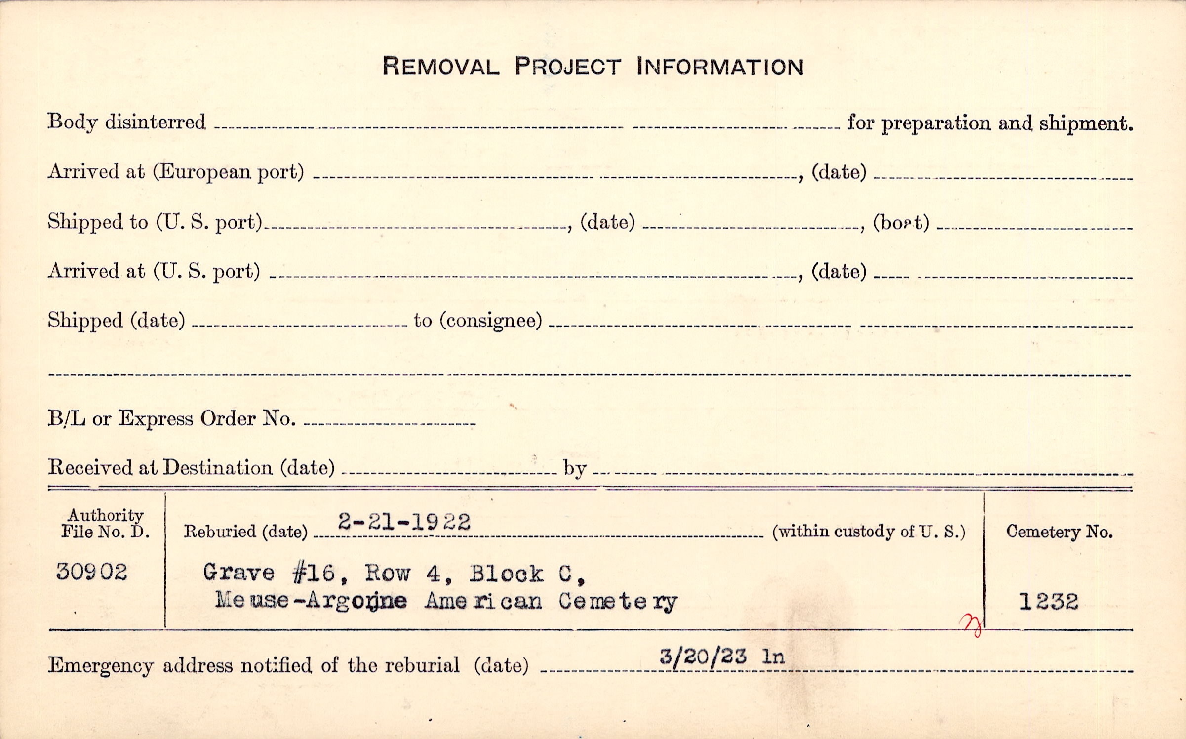 | Permanent Burial in Foreign Cemetery |