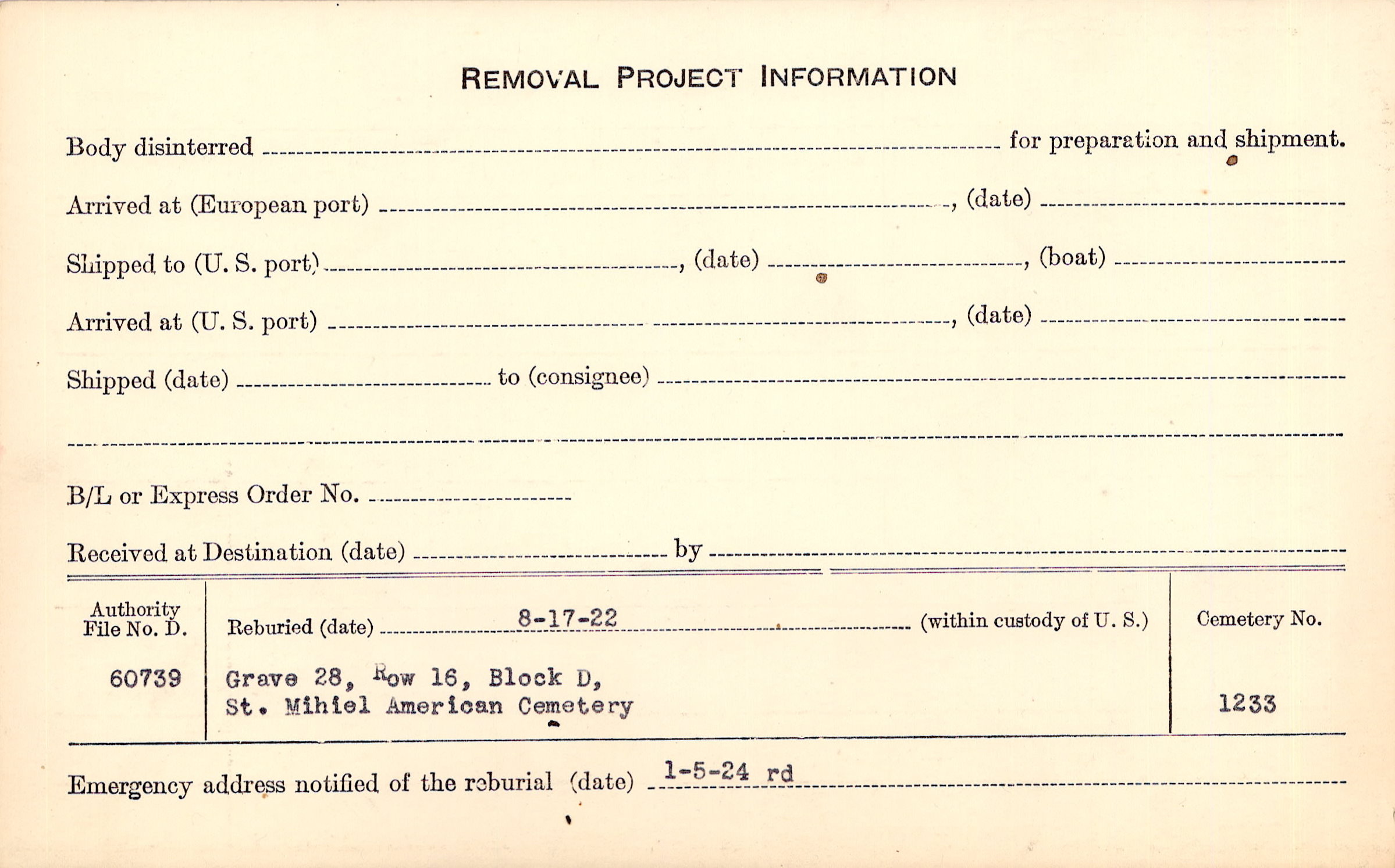 | Permanent Burial in Foreign Cemetery |