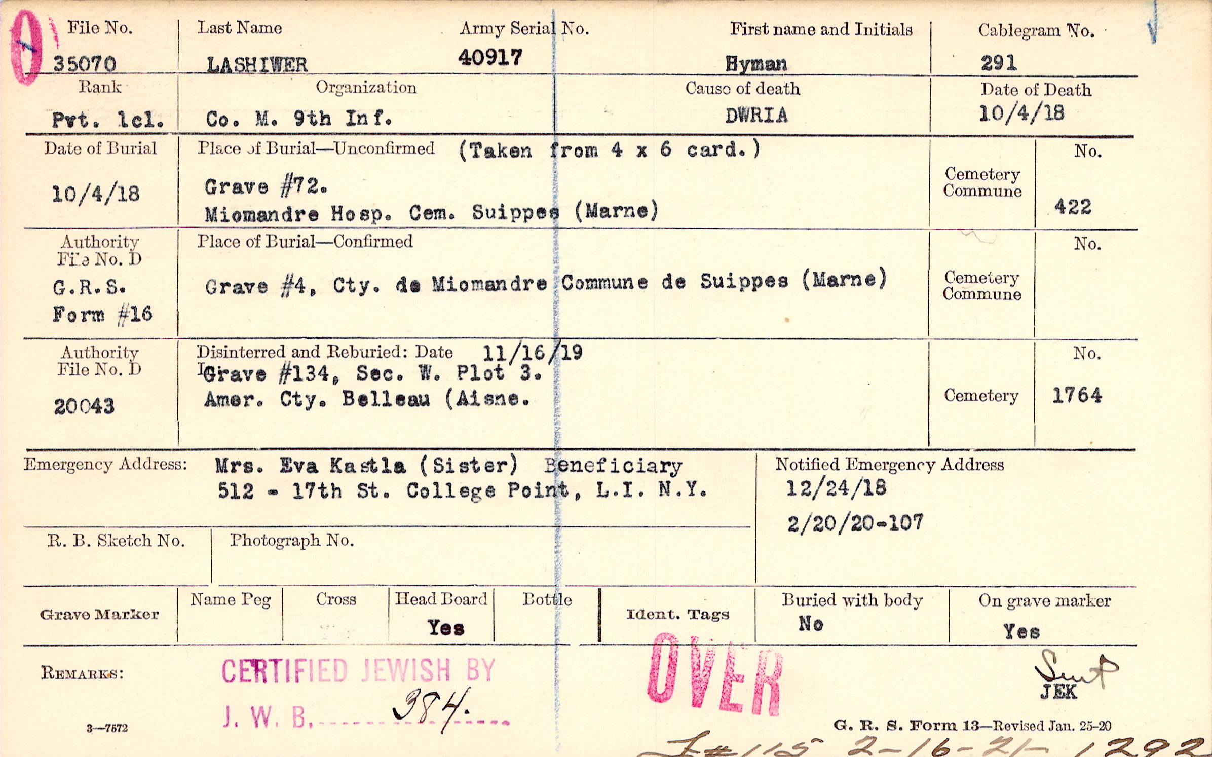 12/24/1918, Form 107: 2/20/1920