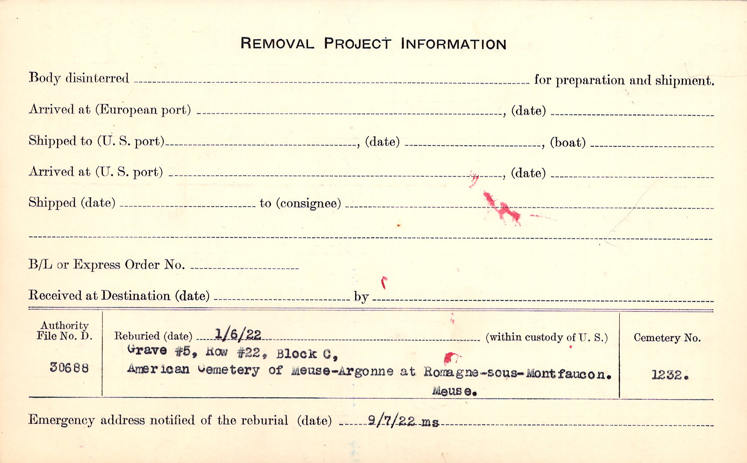 | Permanent Burial in Foreign Cemetery |