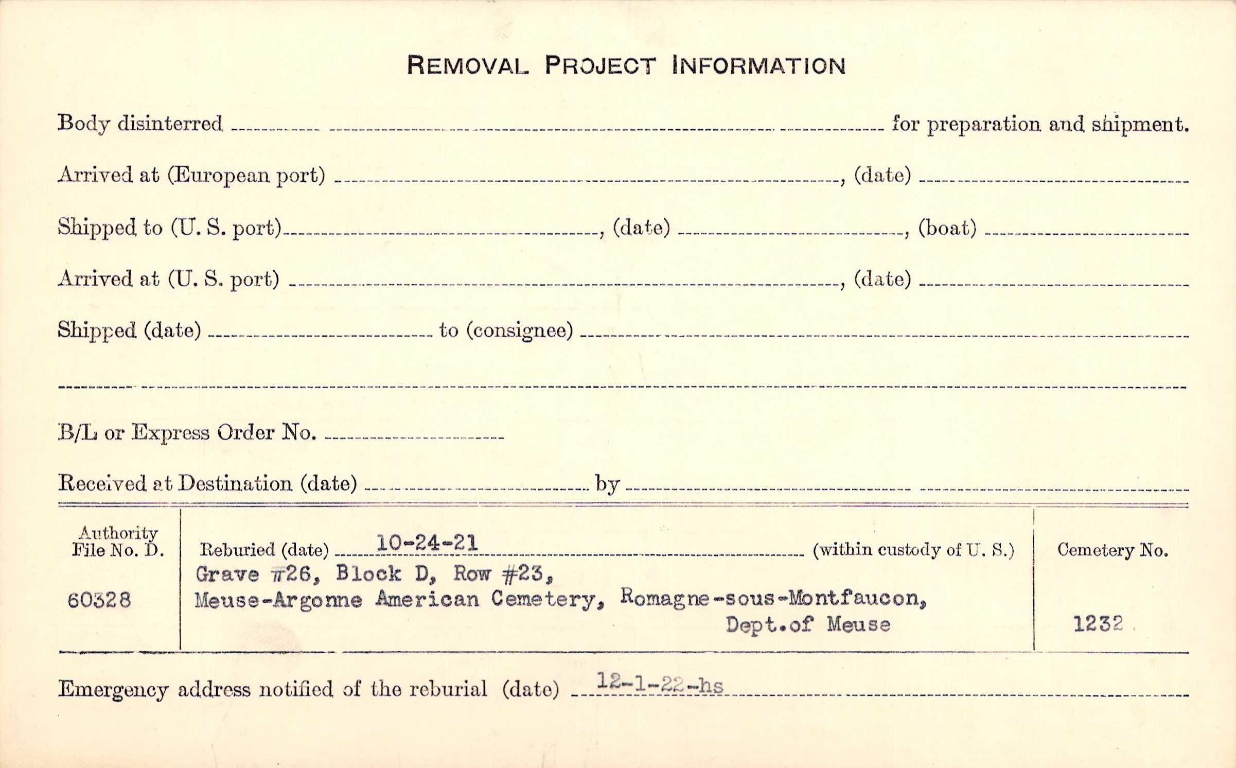 | Permanent Burial in Foreign Cemetery |