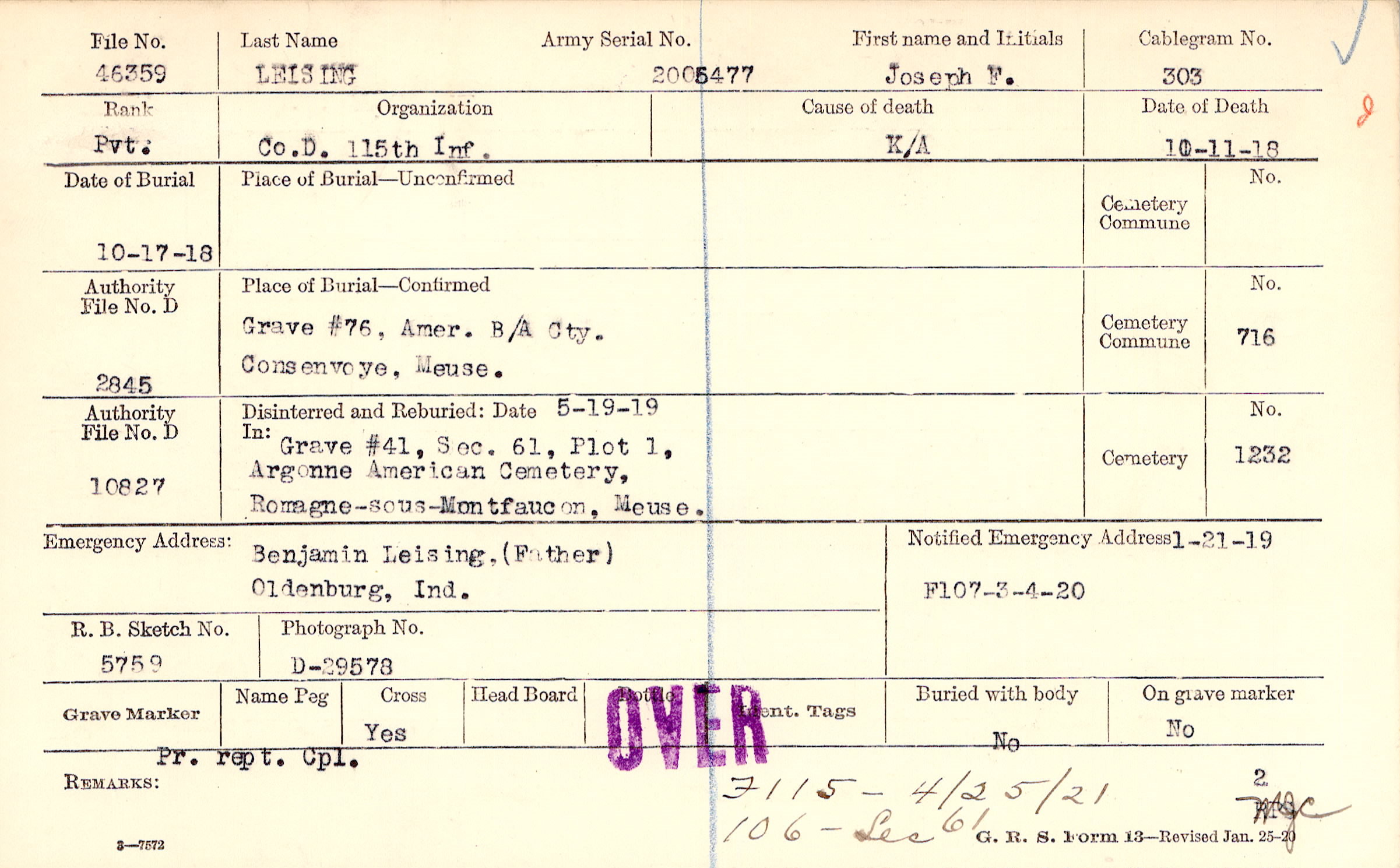 Grave #76, Amer. B/A Cty., Consenvoye, Meuse.