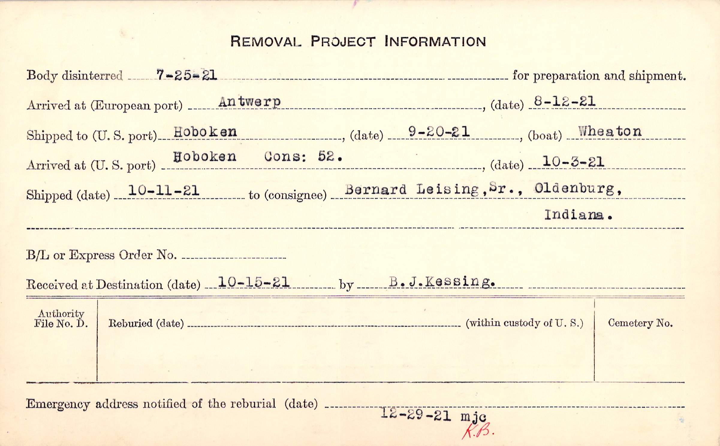 to Bernard Leising, Sr., Oldenburg, Indiana.