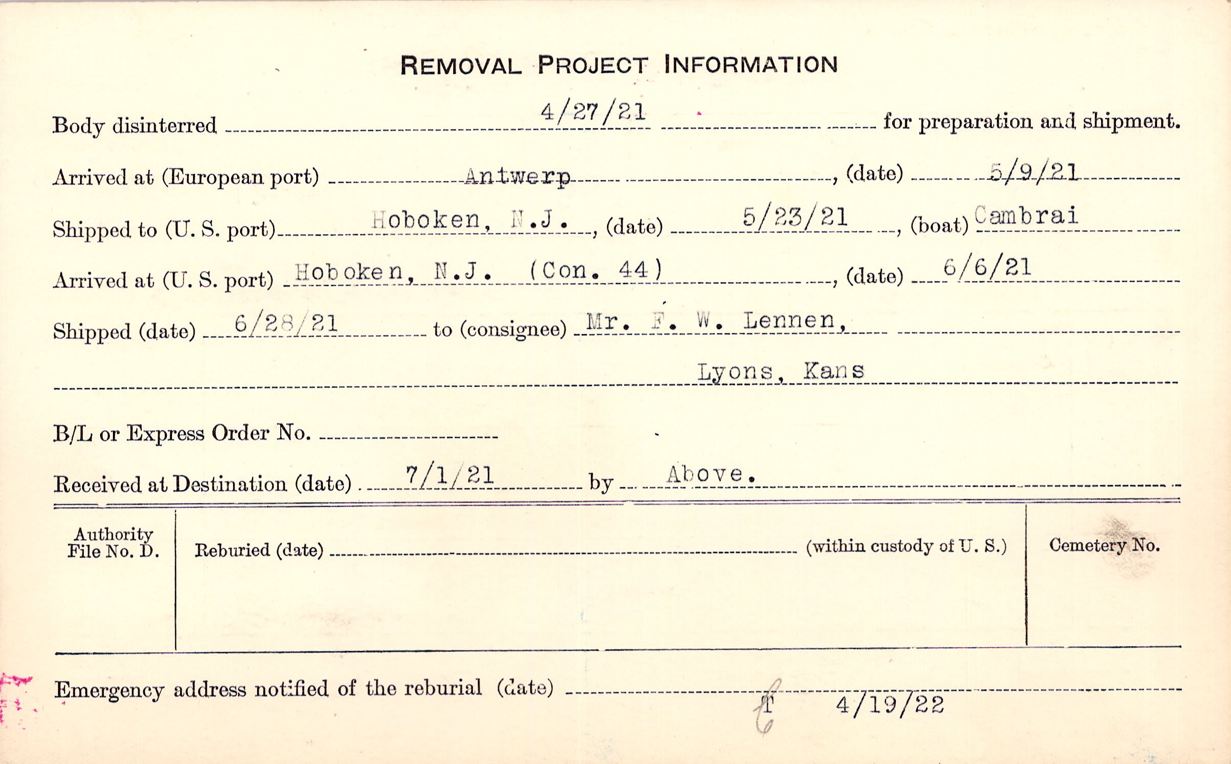 Mr. F.W. Lennen, (Father), Soldier, Kans.