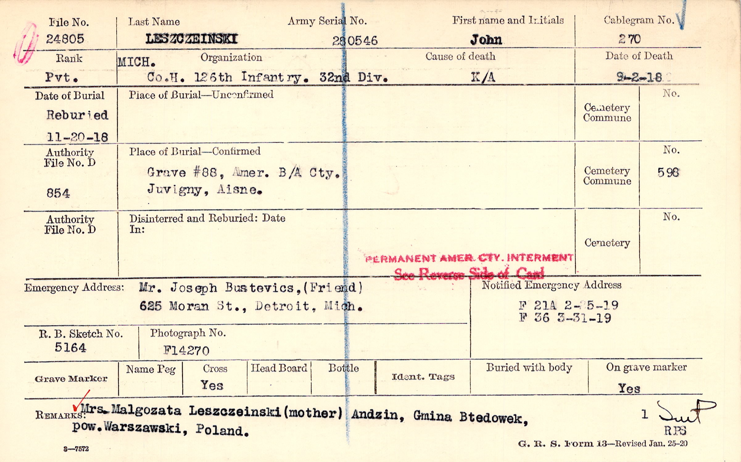 Grave #88, Amer. B/A Cty., Juvigny, Aisne.
