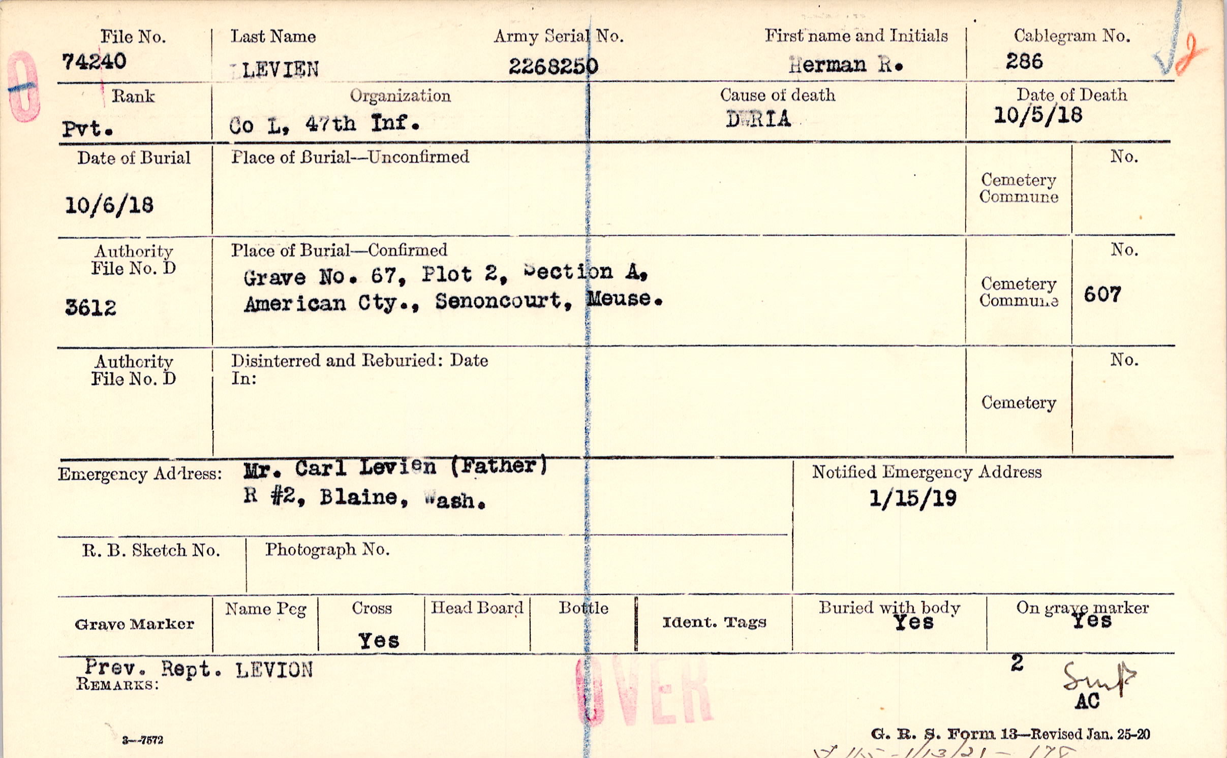 Mr. Carl Levien (Father), R #2, Blaine, Wash.