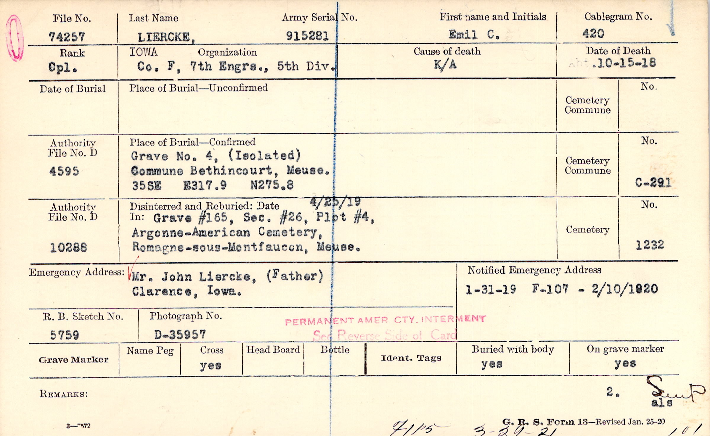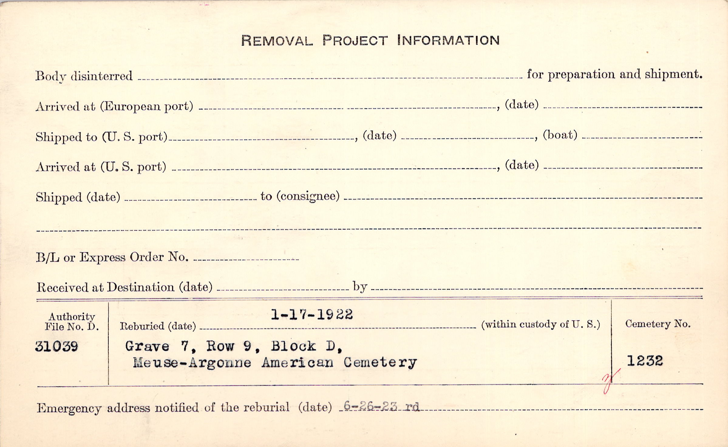 | Permanent Burial in Foreign Cemetery |