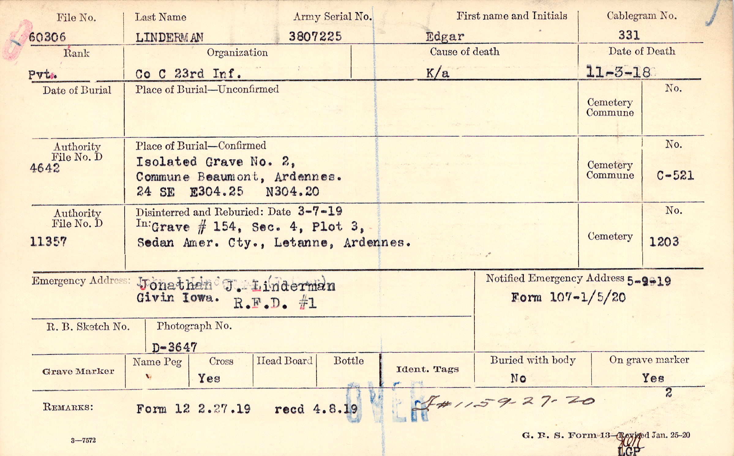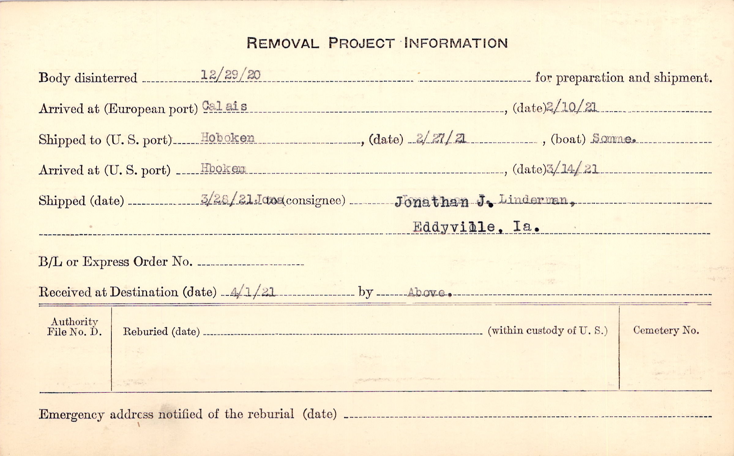 Jonathan J. Linderman, Givin Iowa. R.F.D. #1, R. F.D. #1