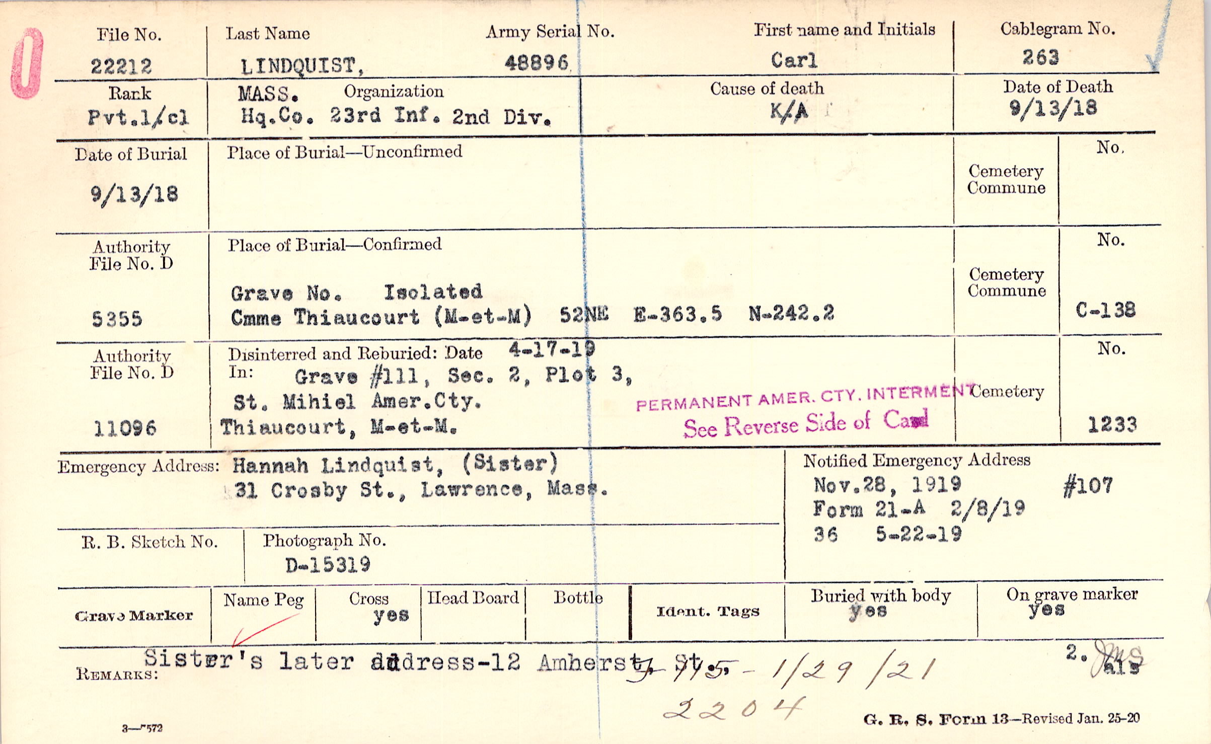 Nov 28, 1919 # Form 107: , Form 21A: 2/8/1919, Form 36: 5/22/1919