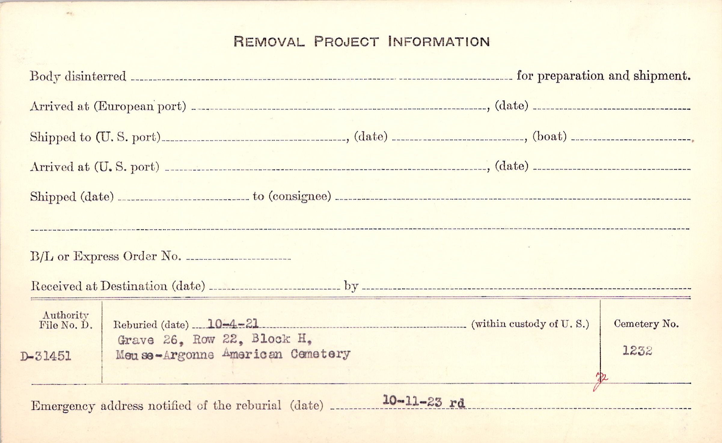Grave 8, Plot C, Row 1, American Cty., Fleury sur Aire, Meuse.