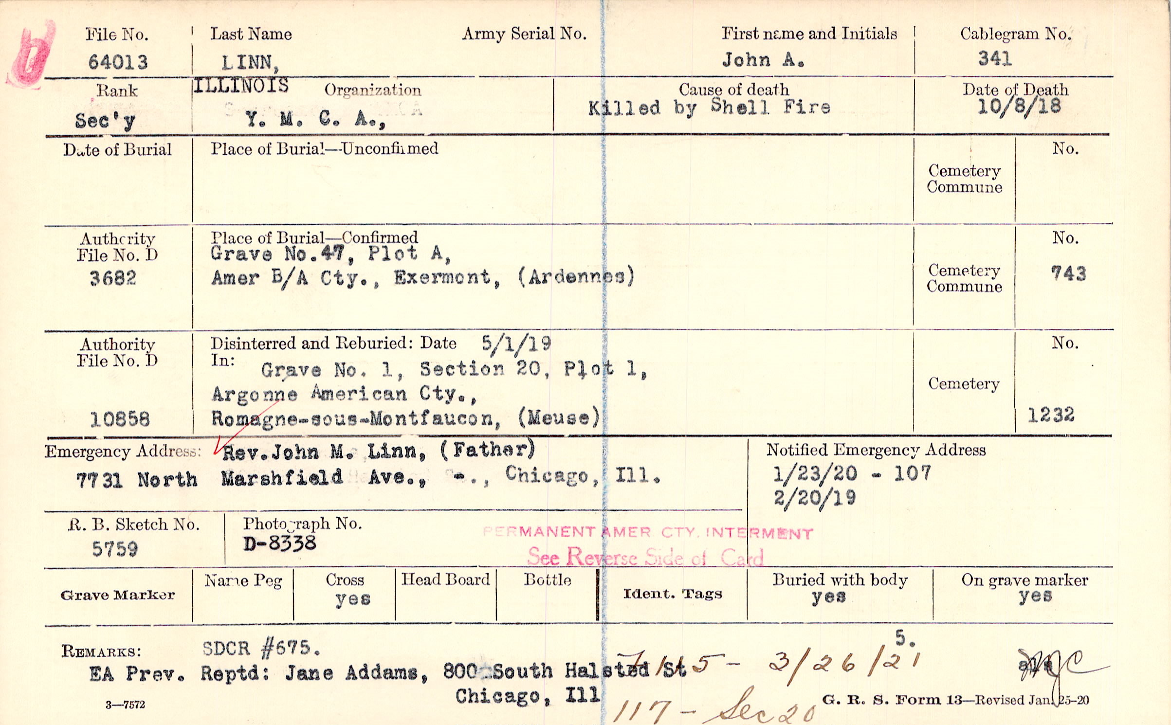Rev. John M. Linn, (Father), 7731 North Marshfield Ave., -., Chicago, Ill.