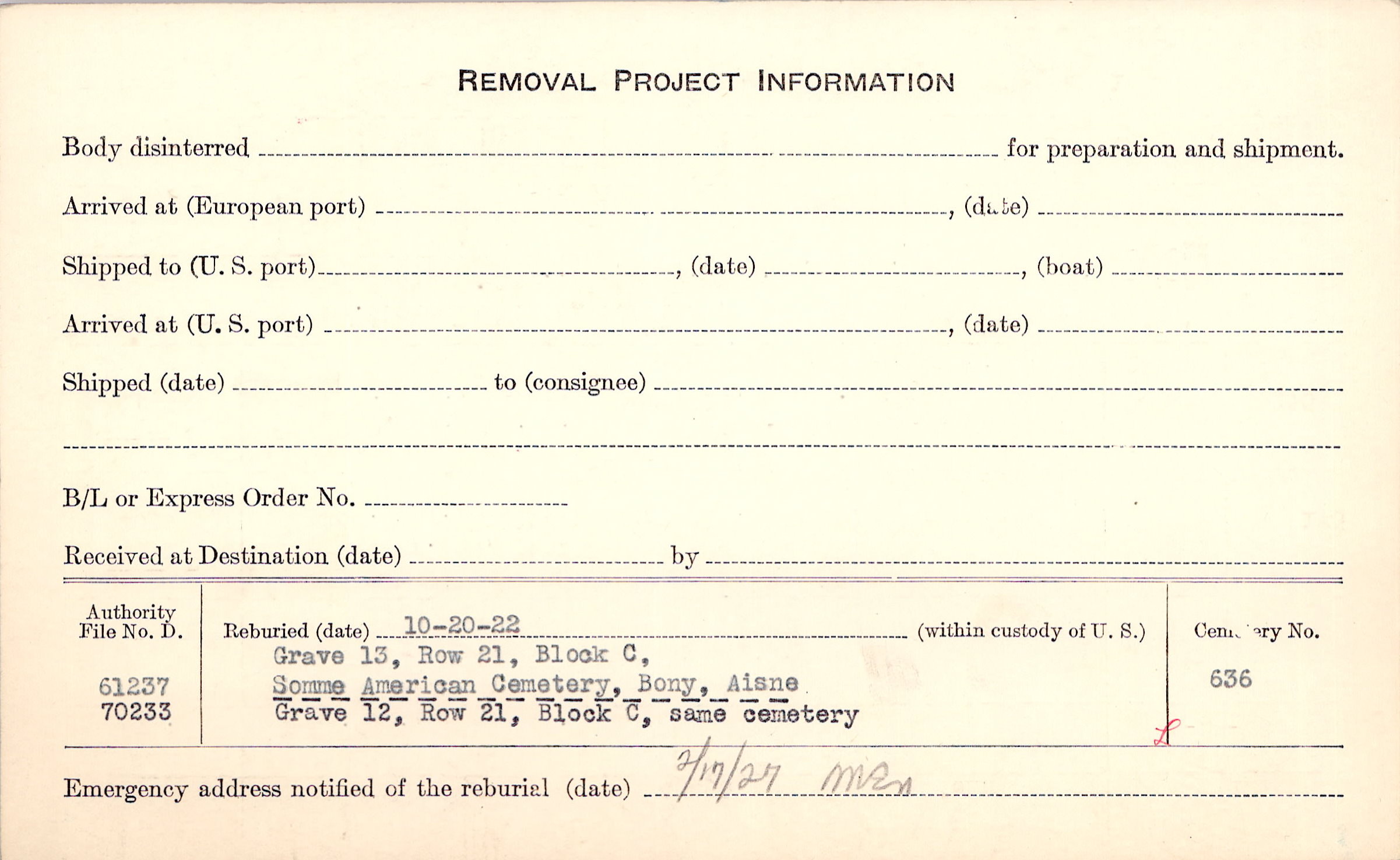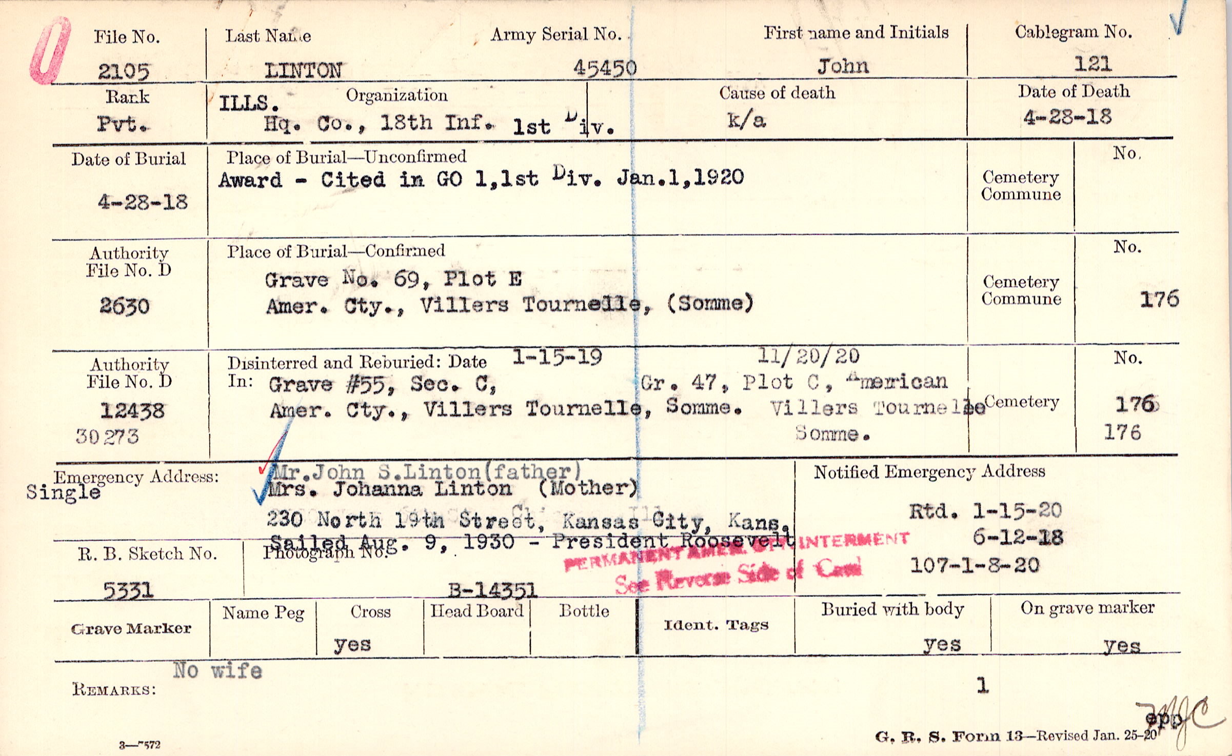Prior Burial in Foreign Cemetery |
