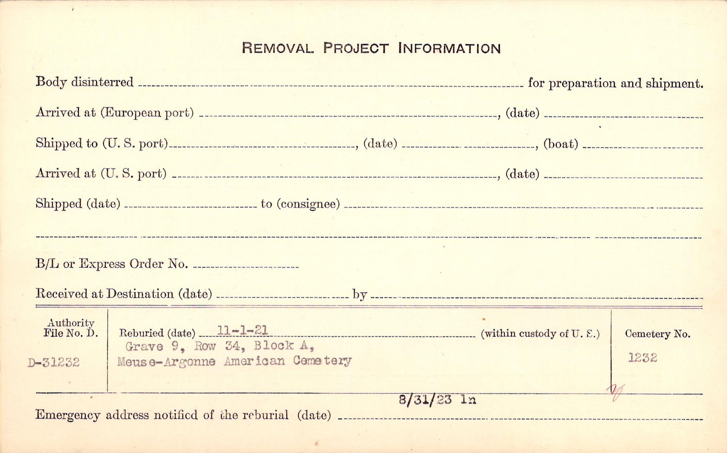 Grave 23, Plot B,American Cty., Verdun, Meuse.